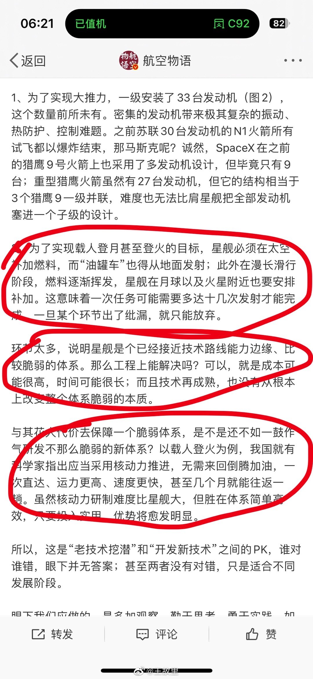 但是问题是除了动力不稳定,密集发动机带来的震动,热防护,这是其一,其二是燃料需要不断的发射上去,边飞边加油,环节太多,一个环节出问题就可能影响全局工作