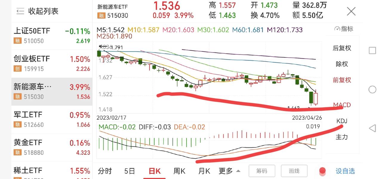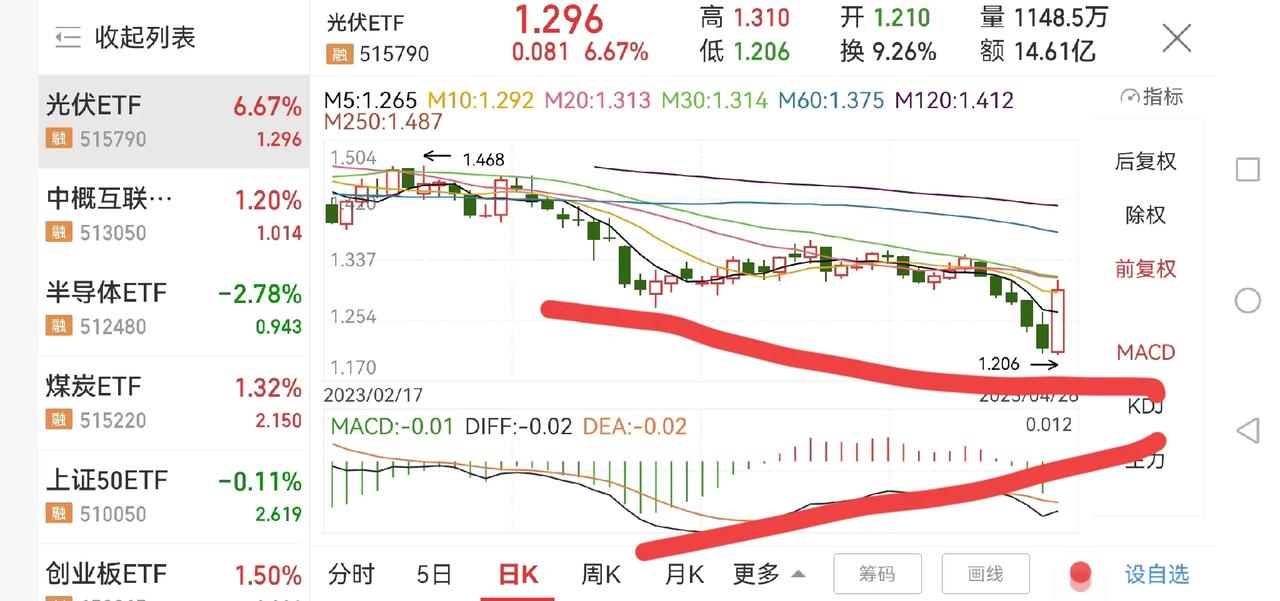 这些板块出现了底背离形态! 大盘连续跌几天之后,虽然大盘未创新低,但好多板块出现了新低,主要是创业板、光伏、新能源车等板块都创了新低,导致这些板块都出现了底背离的趋势,说明短线反弹在即,但周线和月线都没走好,短线只能以反弹对待,继续观察。