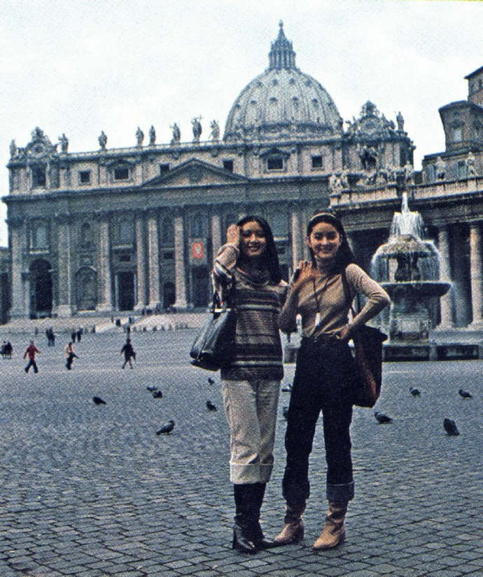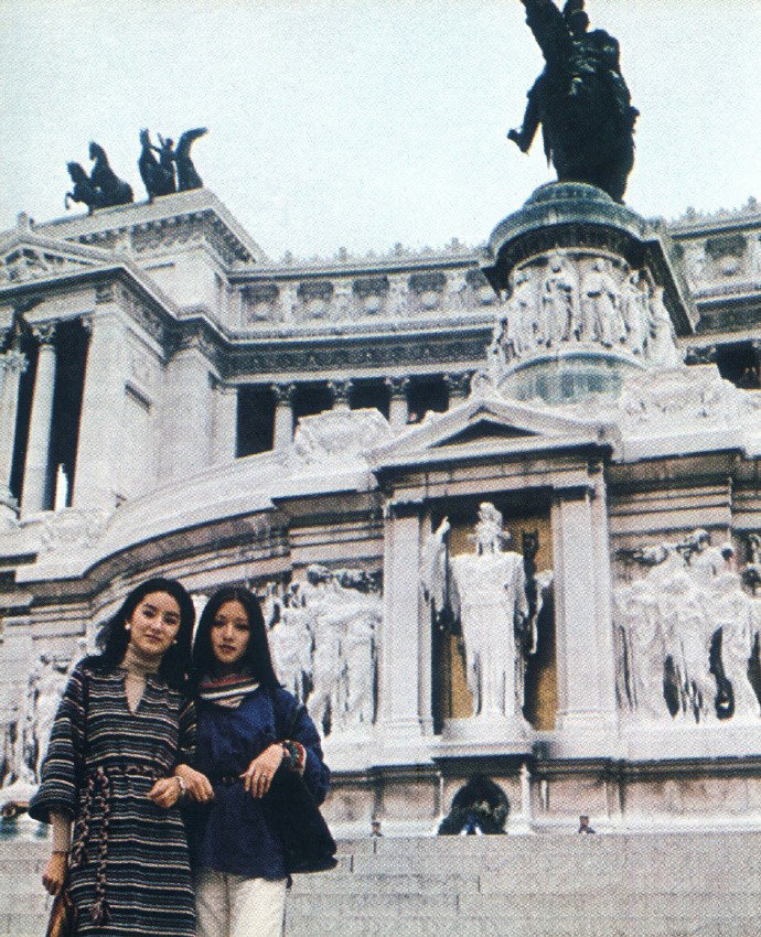 1977年,23岁的林青霞与24岁的胡因梦同游意大利的照片,没看错!这是42年前的时尚。