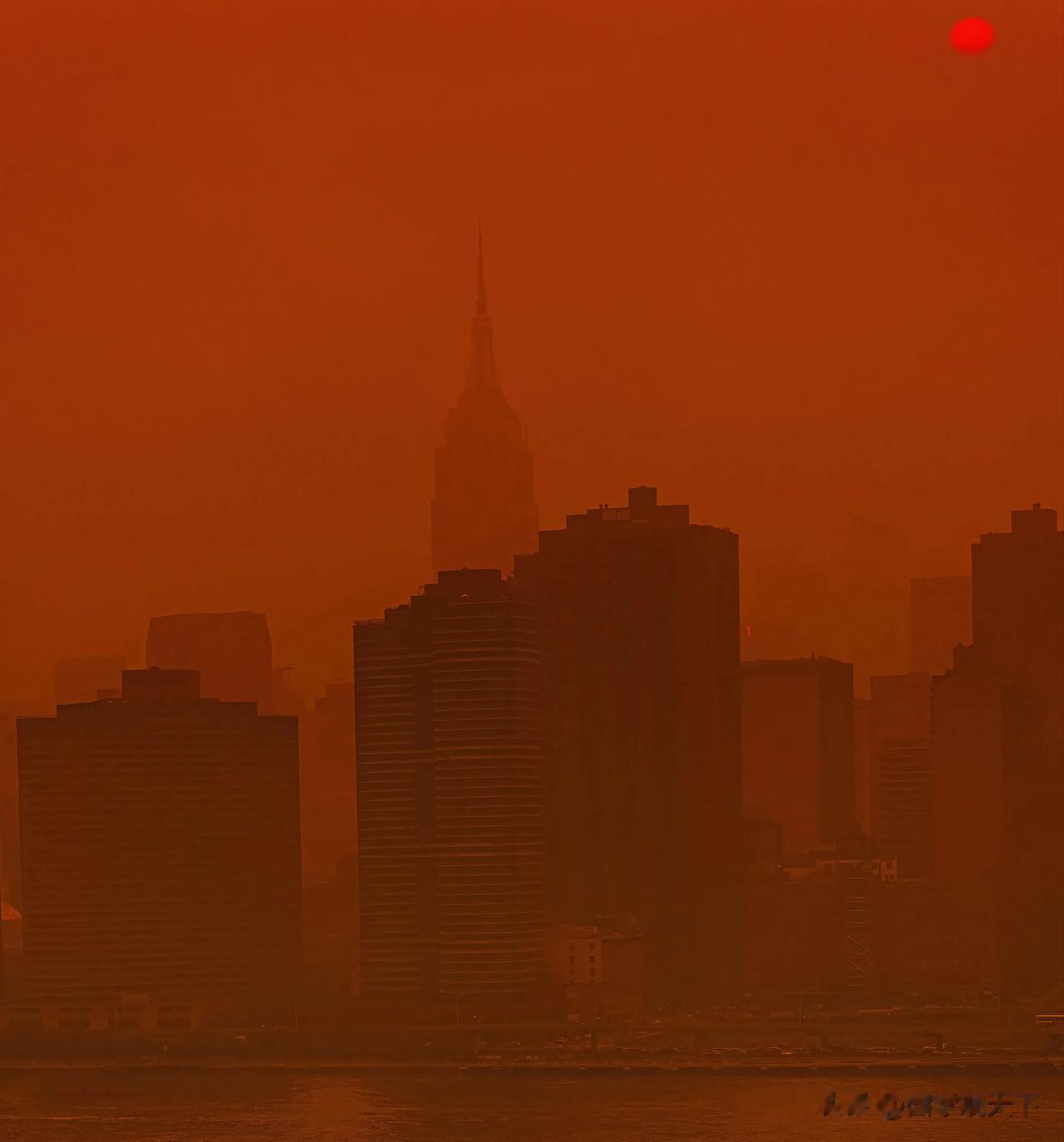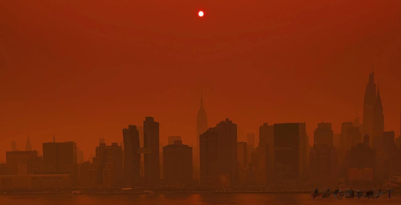 6月7日,美国纽约超过了印度新德里,成为世界上空气污染最严重的城市,看起来就像是火星城。