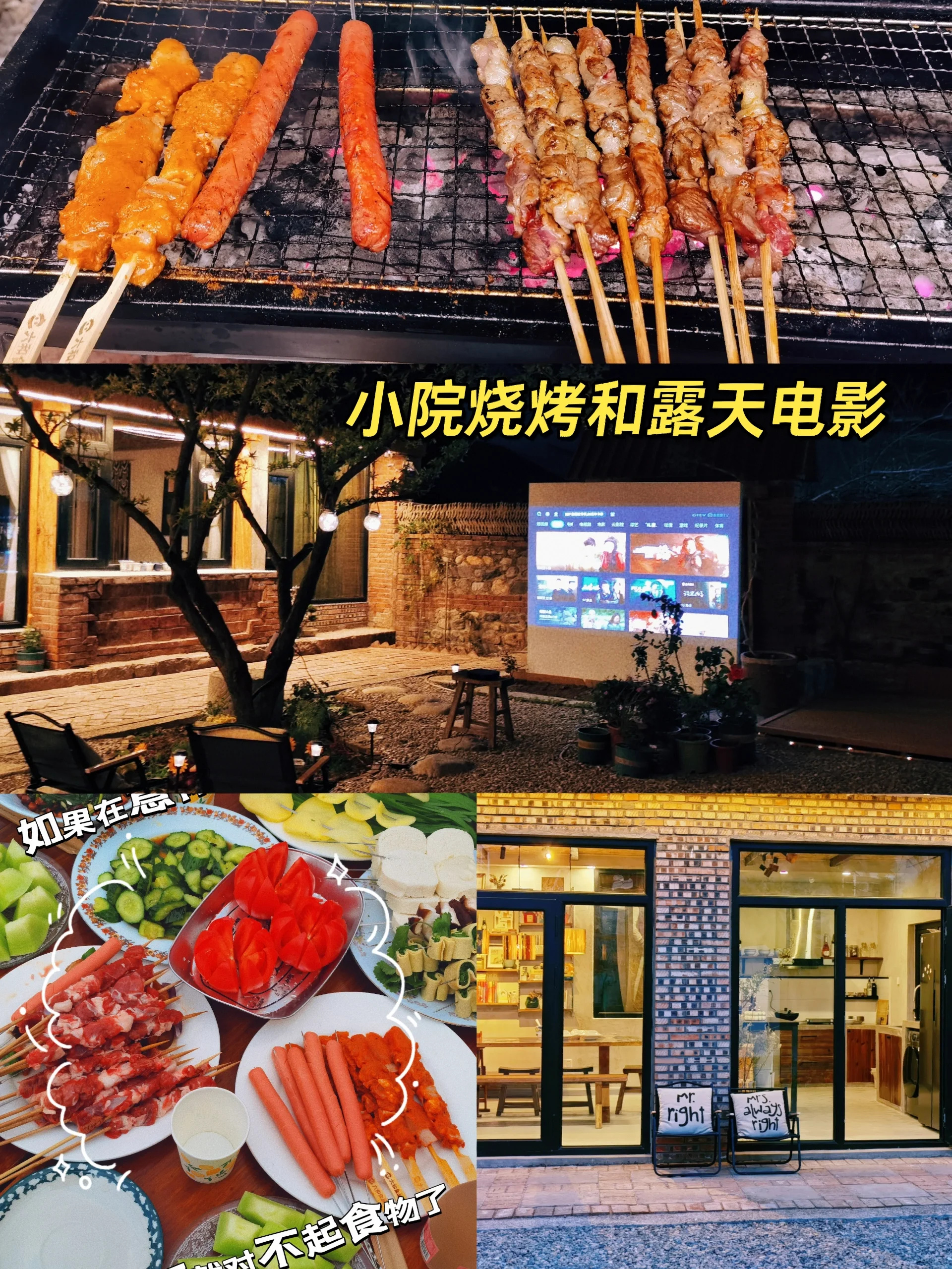 晚上,自己动手烤个串,喝个啤酒!看着露天电影!