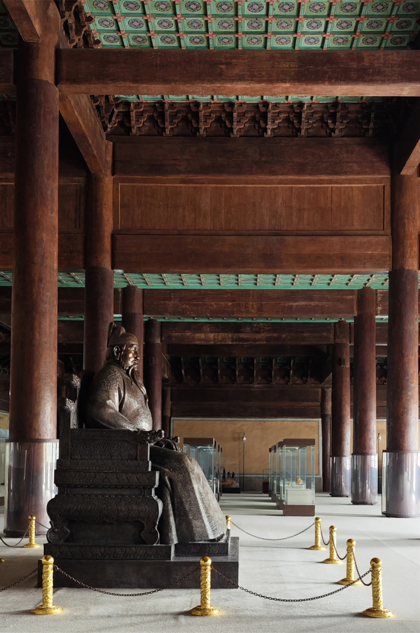图5,长陵;图6,碑亭;图7,重点观看稜恩殿,规模宏伟,九开间,60根楠木柱(图8)的木结构大殿!内部还有文物展览。
