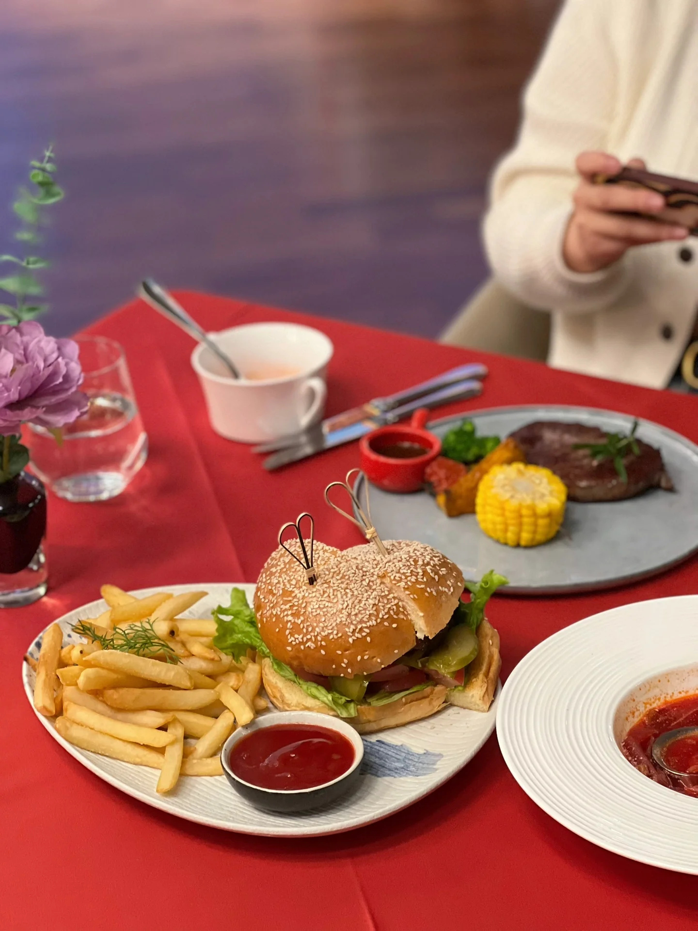 主食我换了牛排加收30元,没必要因为不好吃,朋友点的汉堡还不错。