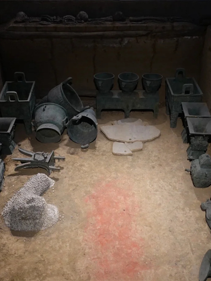 殷墟博物馆依然有一些好东西,例如“国家宝藏”牛尊;车马坑展示馆值得一看,应该是原物展陈;妇好墓下到地下看墓坑还挺有趣。