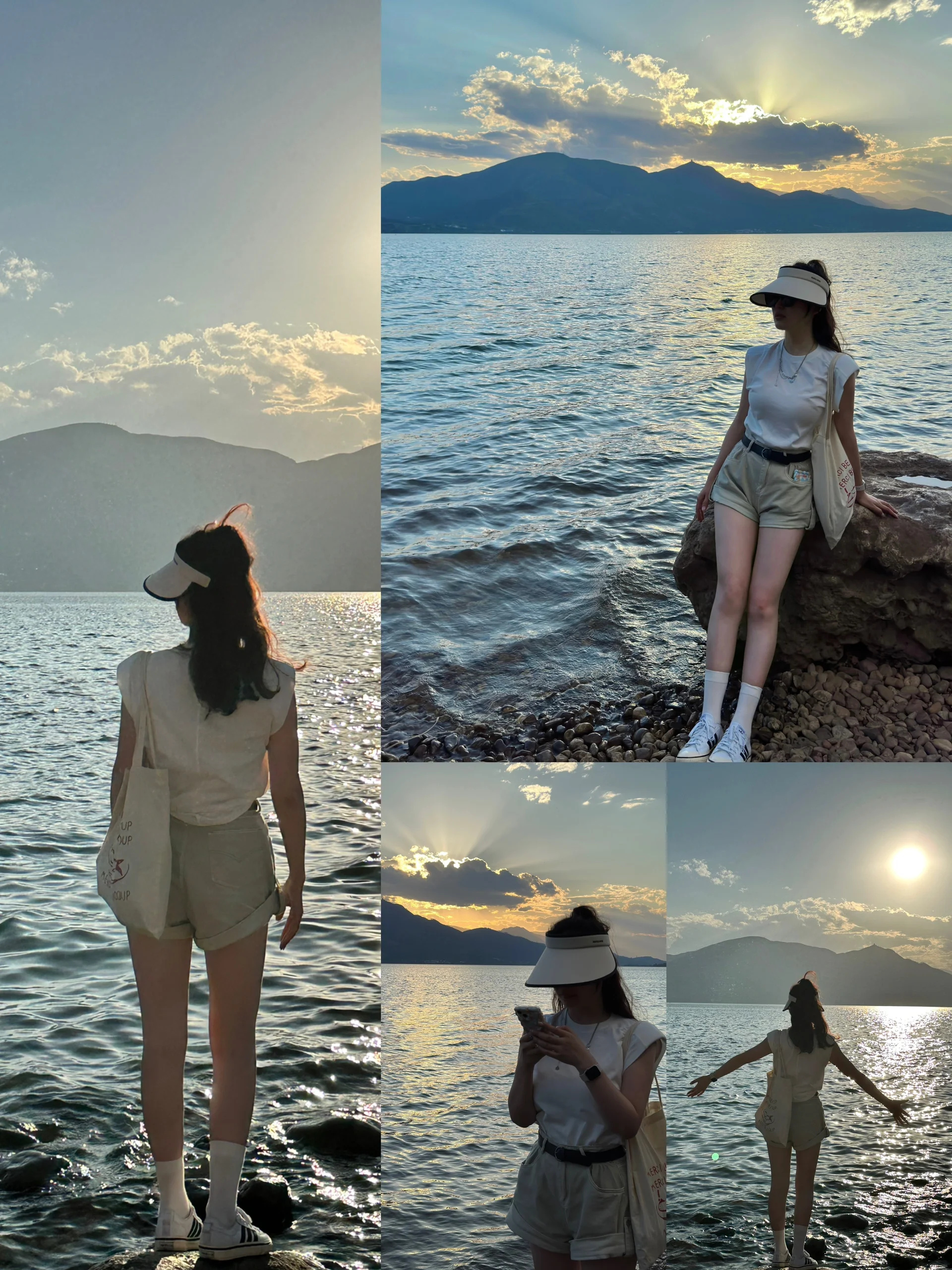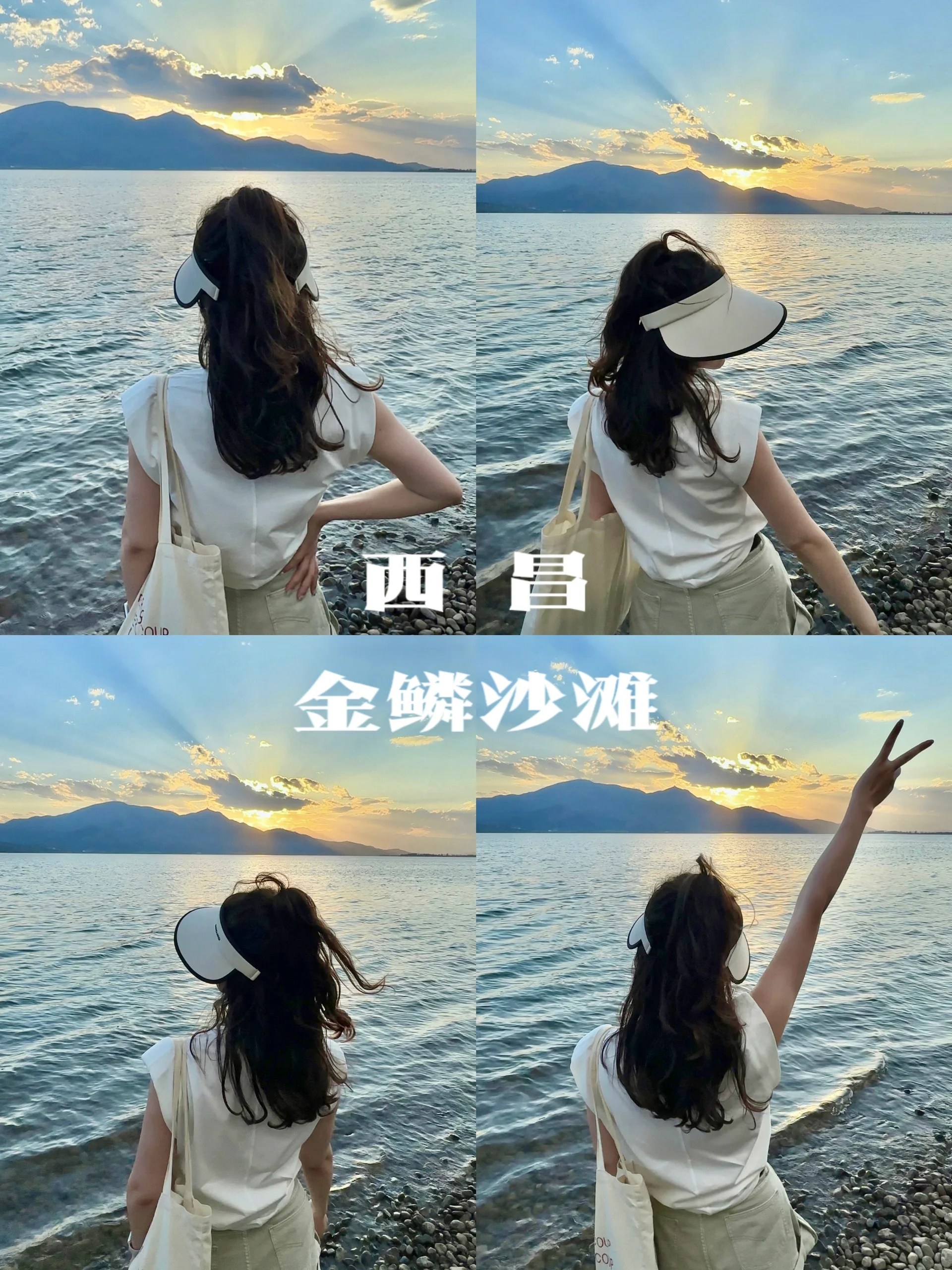 金麟沙滩🏖️看日落,一般日落是19-20点,去的时候可以坐10元观光车(19:00观光车收车)回去可以走路2.5km沿湖栈道看晚霞,走到核桃村再打车,但106路20:30收车。