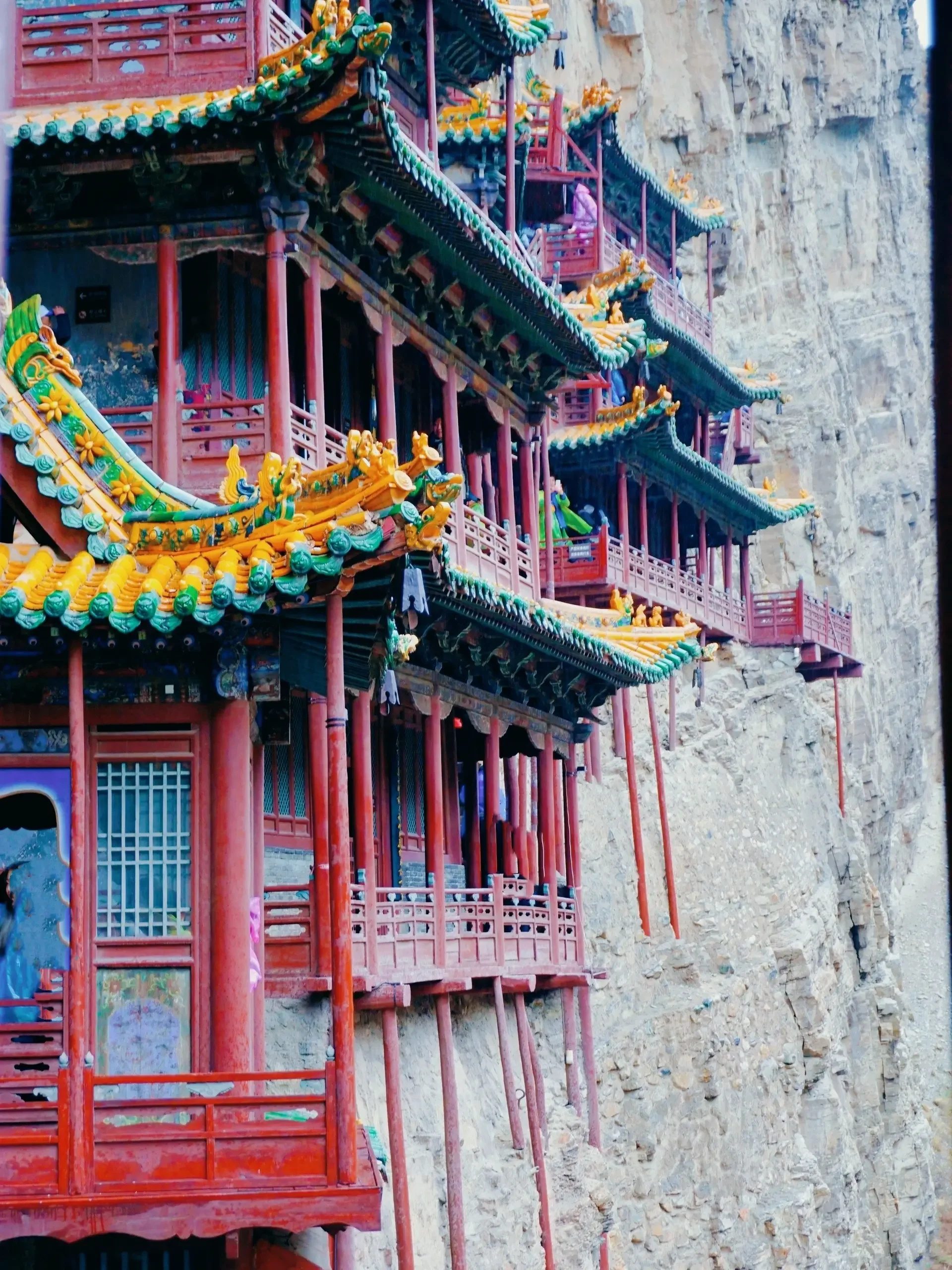 其实悬空寺不大,最值得惊叹的是它依靠榫接结构,嵌入崖内而不倒。