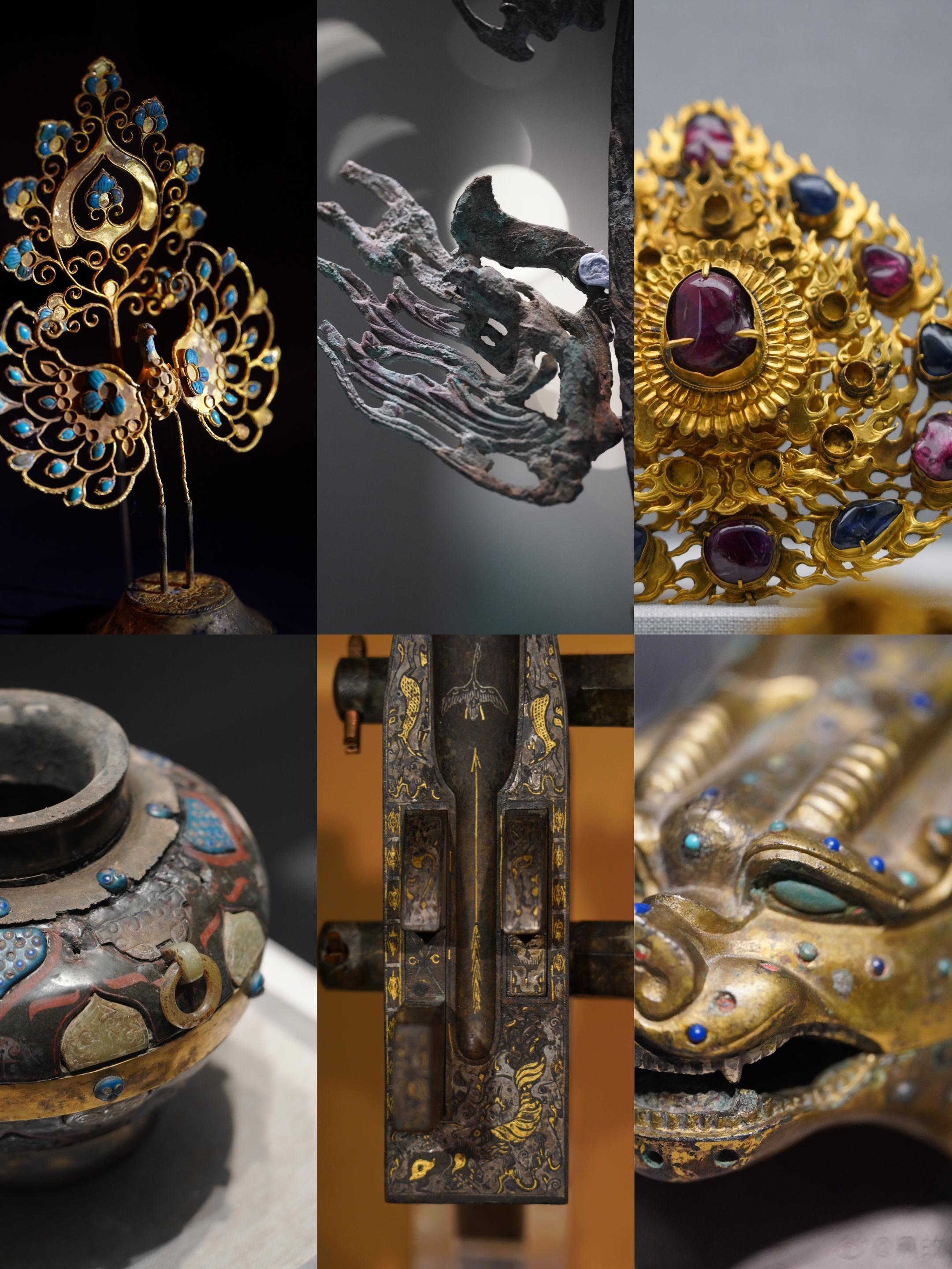 山东省博物馆镶宝石金带饰明洪武遗存,邹城明鲁王朱檀墓出土。带饰为如意云形,托体金
