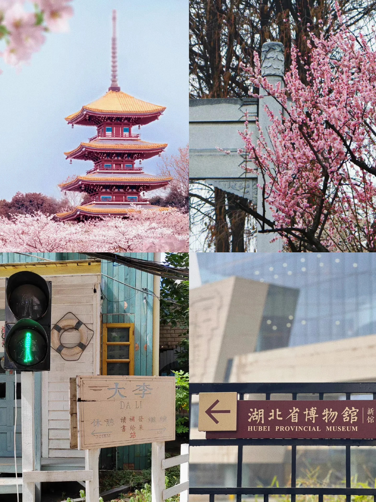 湖北省博物馆-凌波门-东湖南路(景色很美)-东湖一棵树-磨山樱园(赏花)-湖光阁(看落日)-东湖沙滩浴场-音乐小站(听歌)