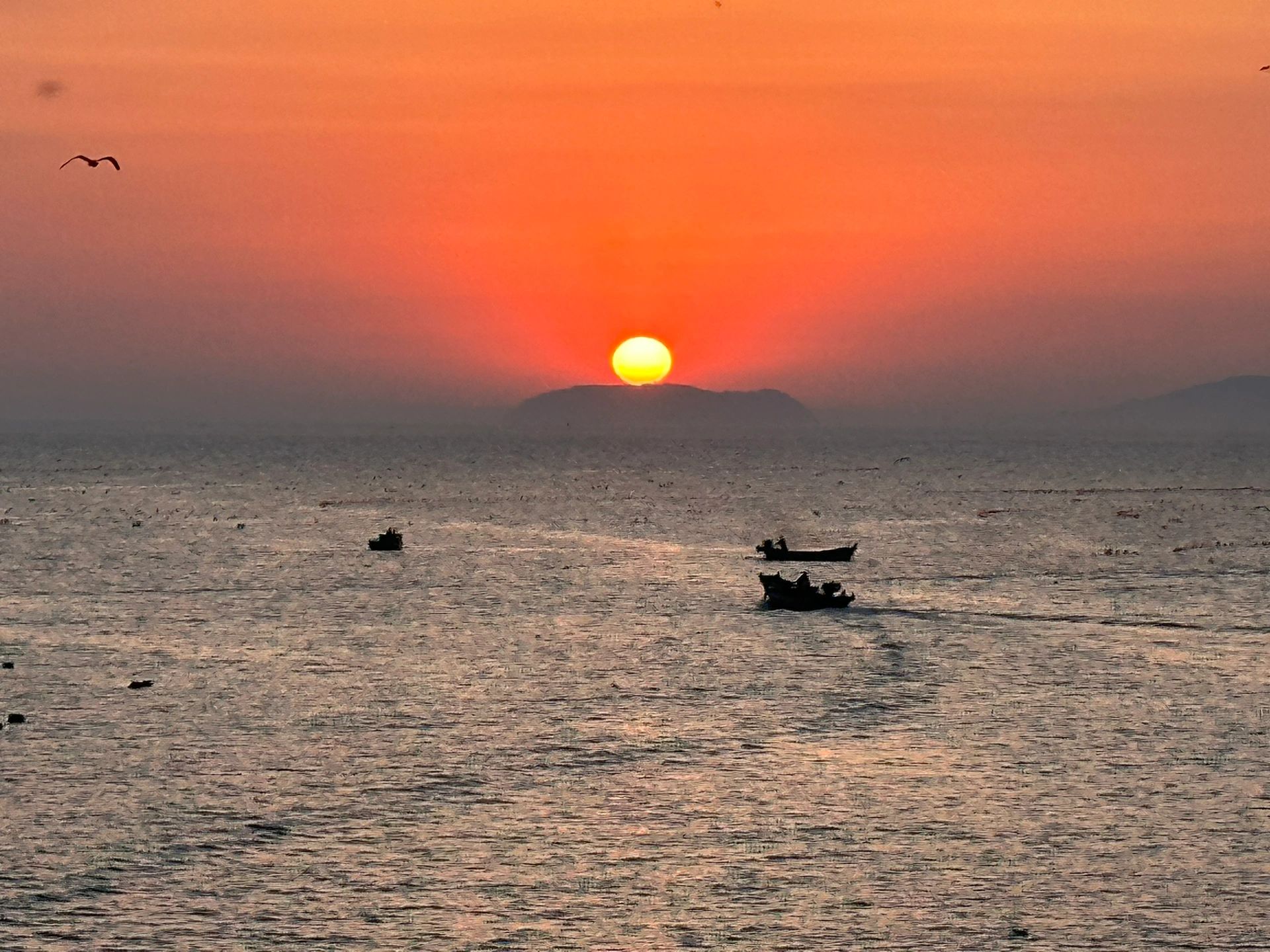 从蓬长码头乘船至长岛,船程45分钟,上船可以花20r升至二楼喂海鸥,会送两根火腿肠,想喂多一点可自备一些。