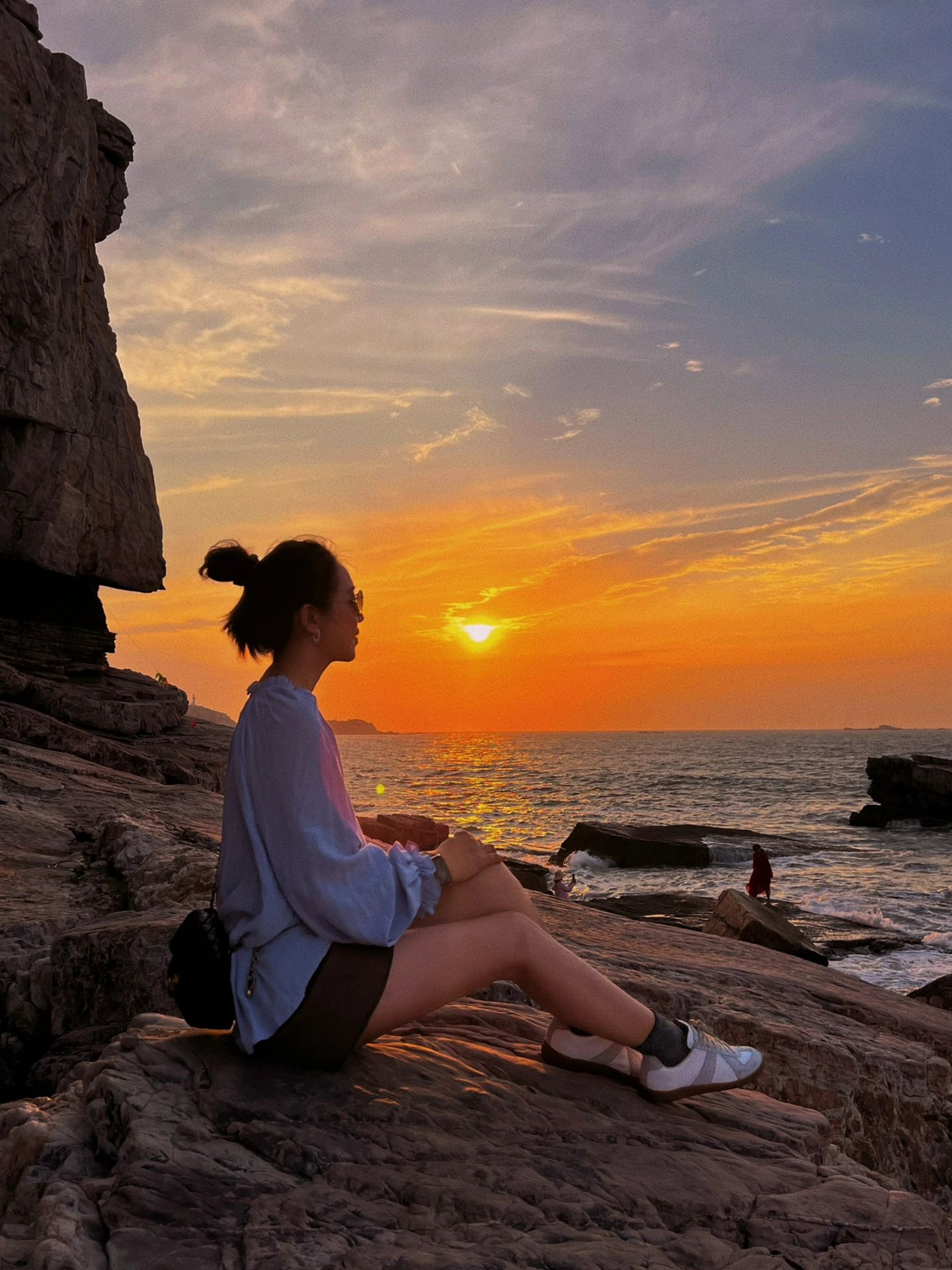 坐在海边看着日落,大海一点点变成橘红色,好像很难不找到inner peace🧡