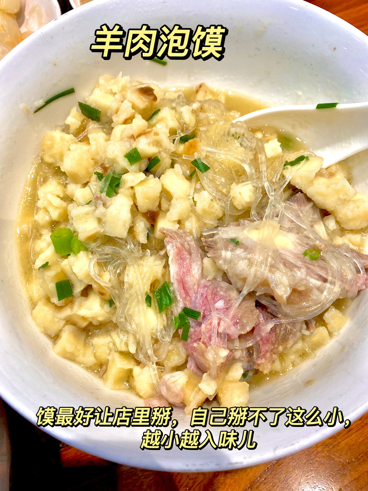 羊肉泡馍偏清淡,配着糖蒜吃非常香,小炒泡馍是酸辣口,有少量的菜和粉丝,也要搭配糖蒜吃!