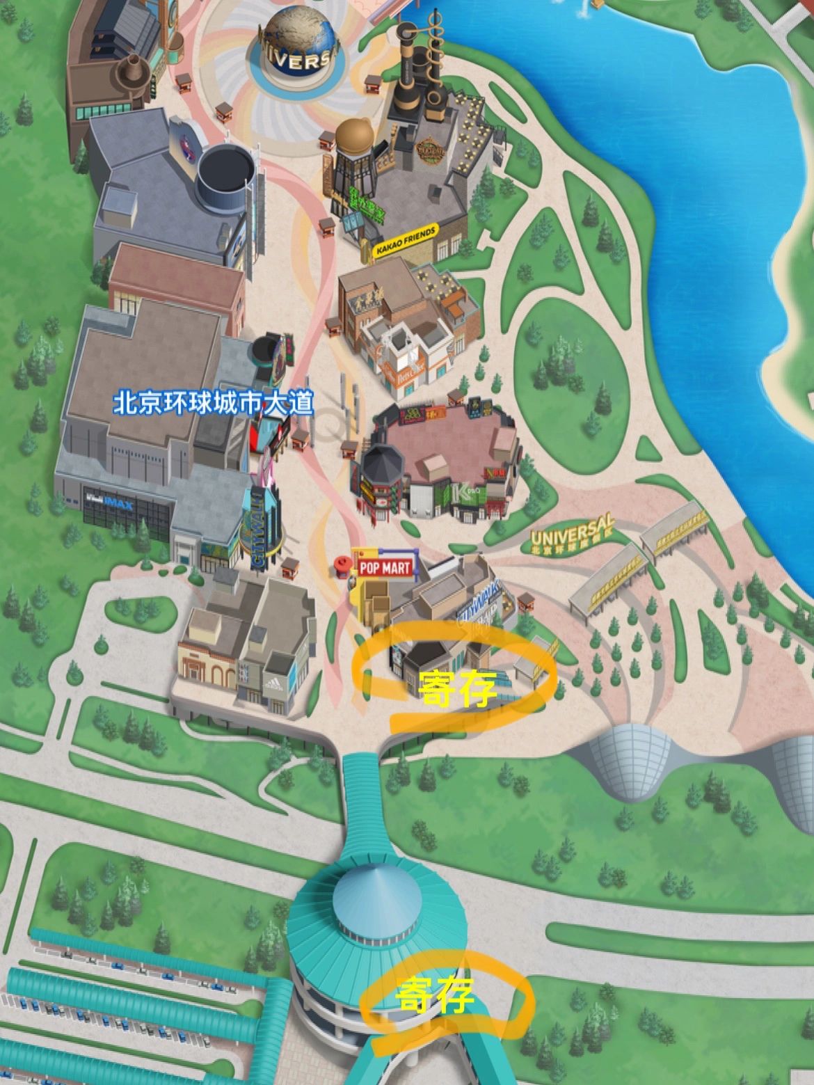 包尽量存园区外的环球大道寄存处、检票口大门寄存柜,园区内寄存柜几乎爆满。