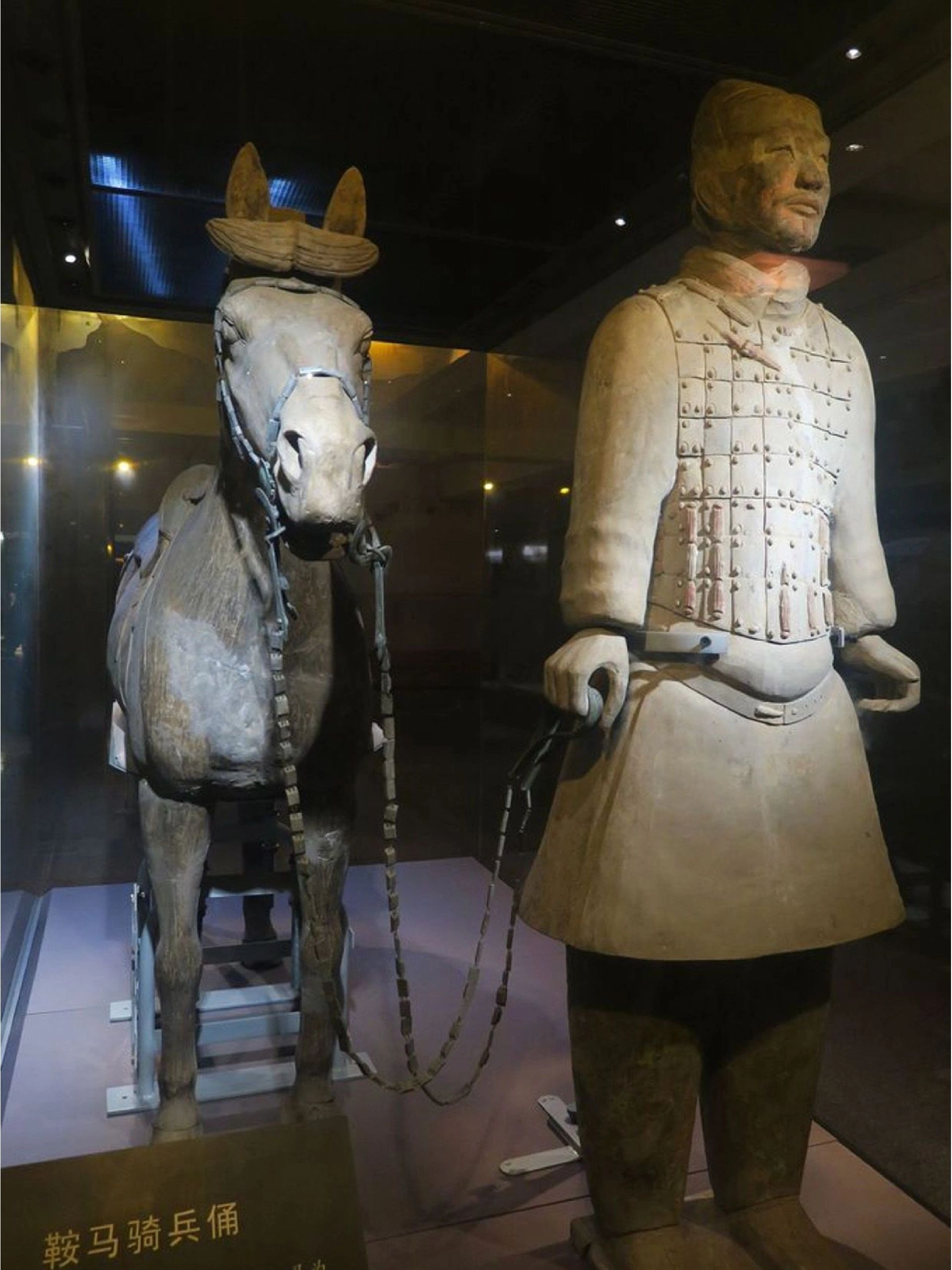 陶俑、陶马原本都是彩绘,由于后来的火烧和浸泡,大多已剥落变色。