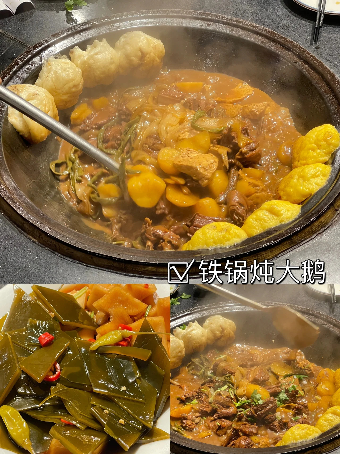 铁锅炖大鹅首选,要贴饼子和花卷,泡汤吃香迷糊了小菜(萝卜和海带)非常爽口,一定不要错过!