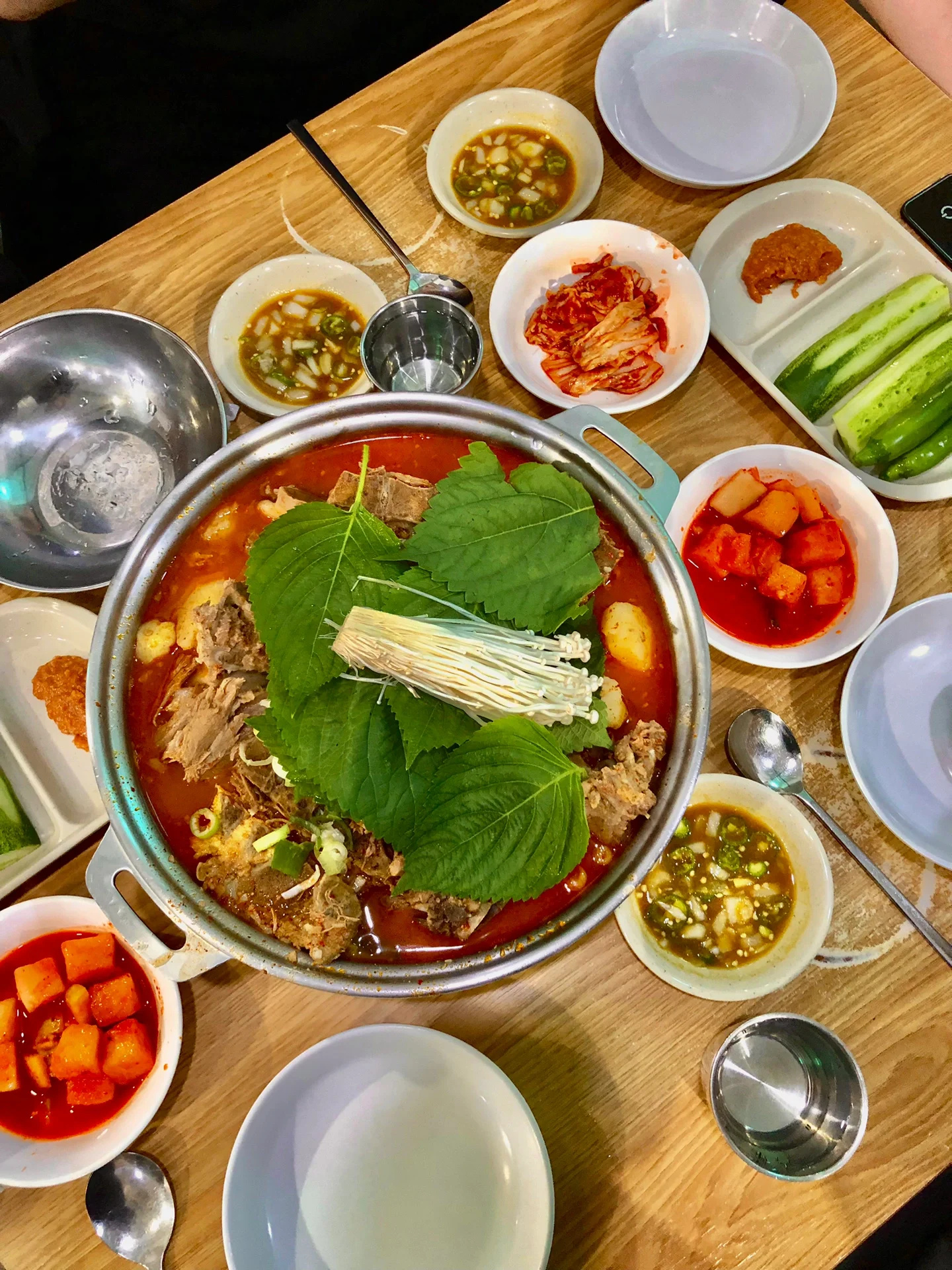 韩国人太喜欢喝酒聊天了,一吃能吃好久,我们八点半到店排队一个多小时才吃上,吃完了旁边韩国人还在聊天喝酒。