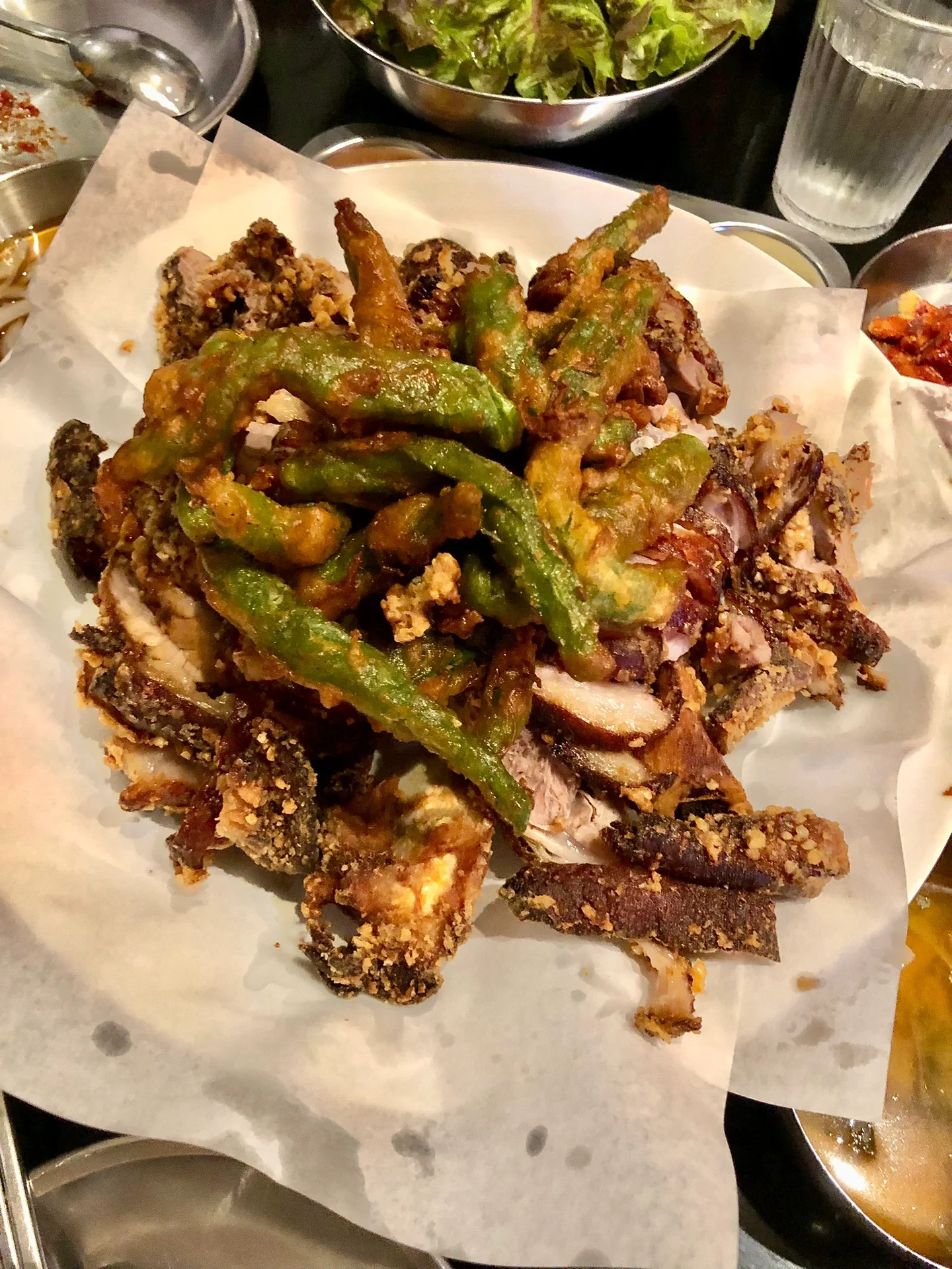 猪蹄入口很香脆软糯,一点也不腻,搭配炸青椒一起吃非常完美,如果不用排队就更好啦。
