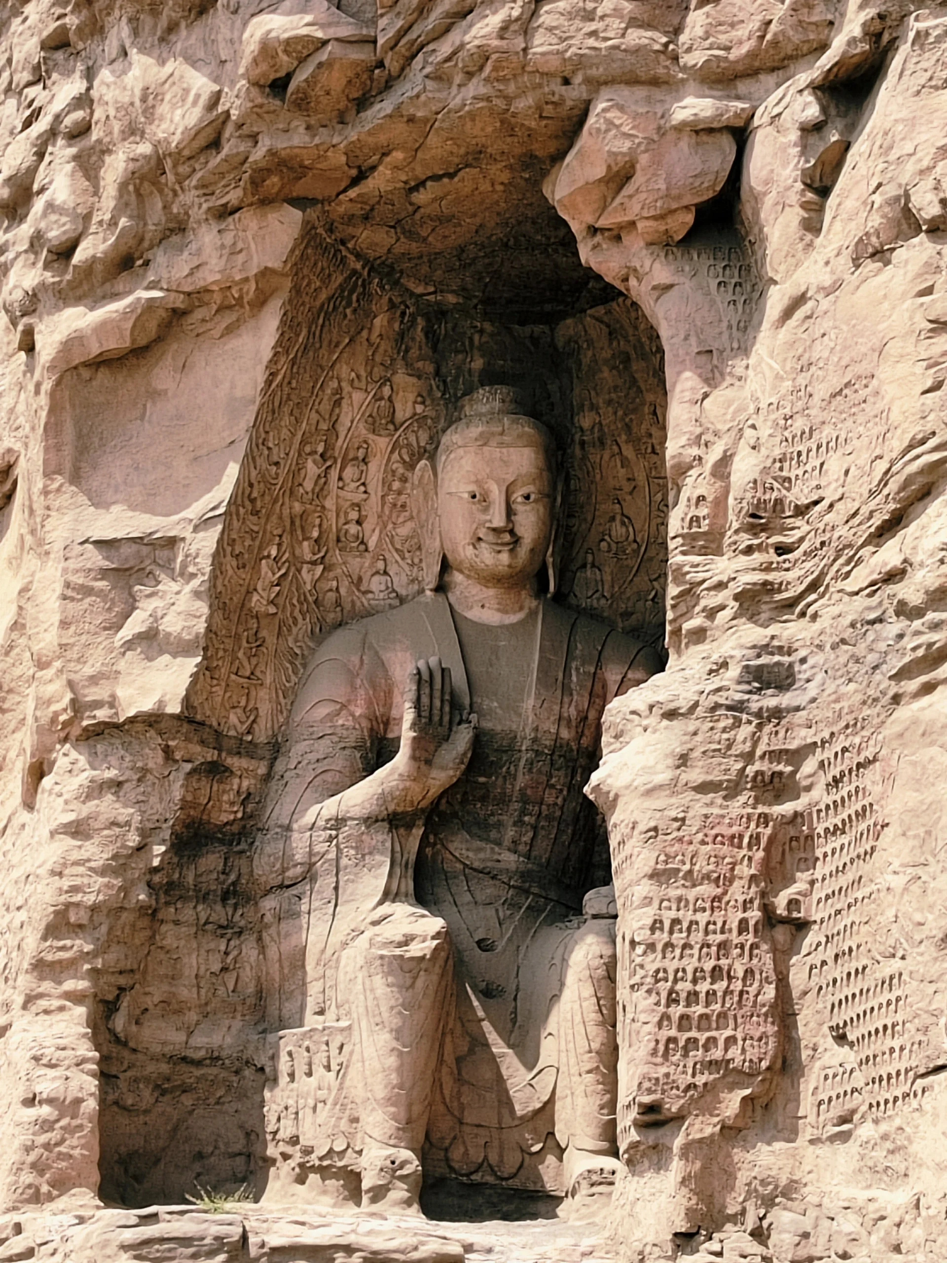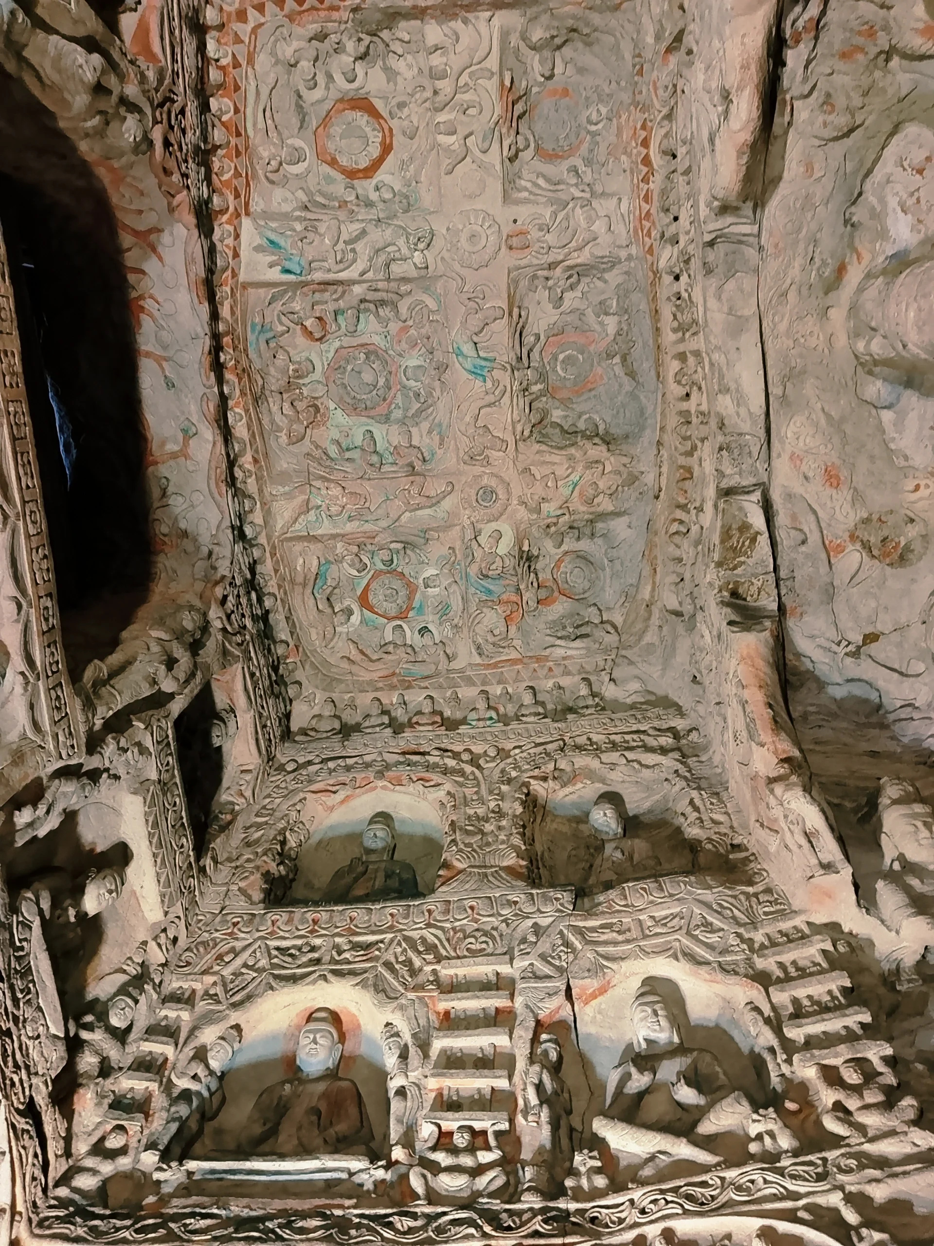 2、跟着人流走,前面的石窟人比较多,后面民间开凿的石窟人就少了