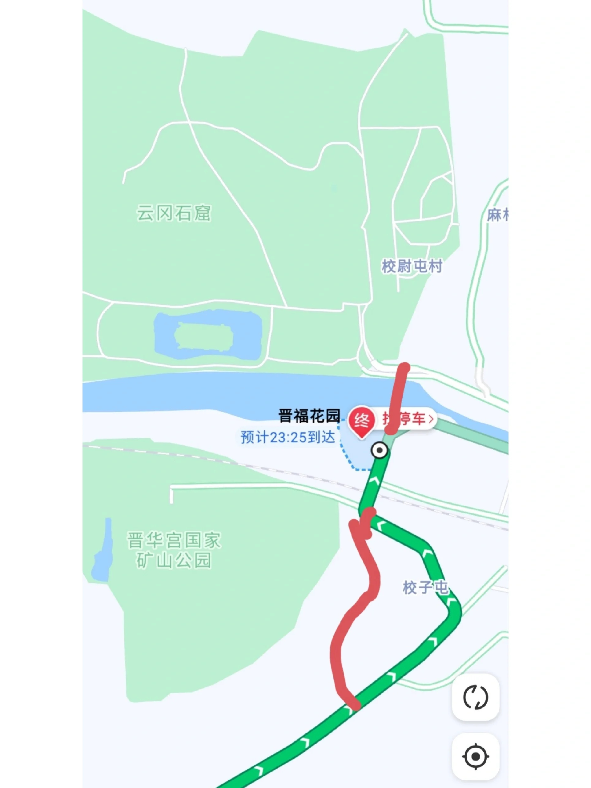 3、导航晋福花园遇到堵车,请马上切换步行模式,不行模式是切换到我画红线的线路