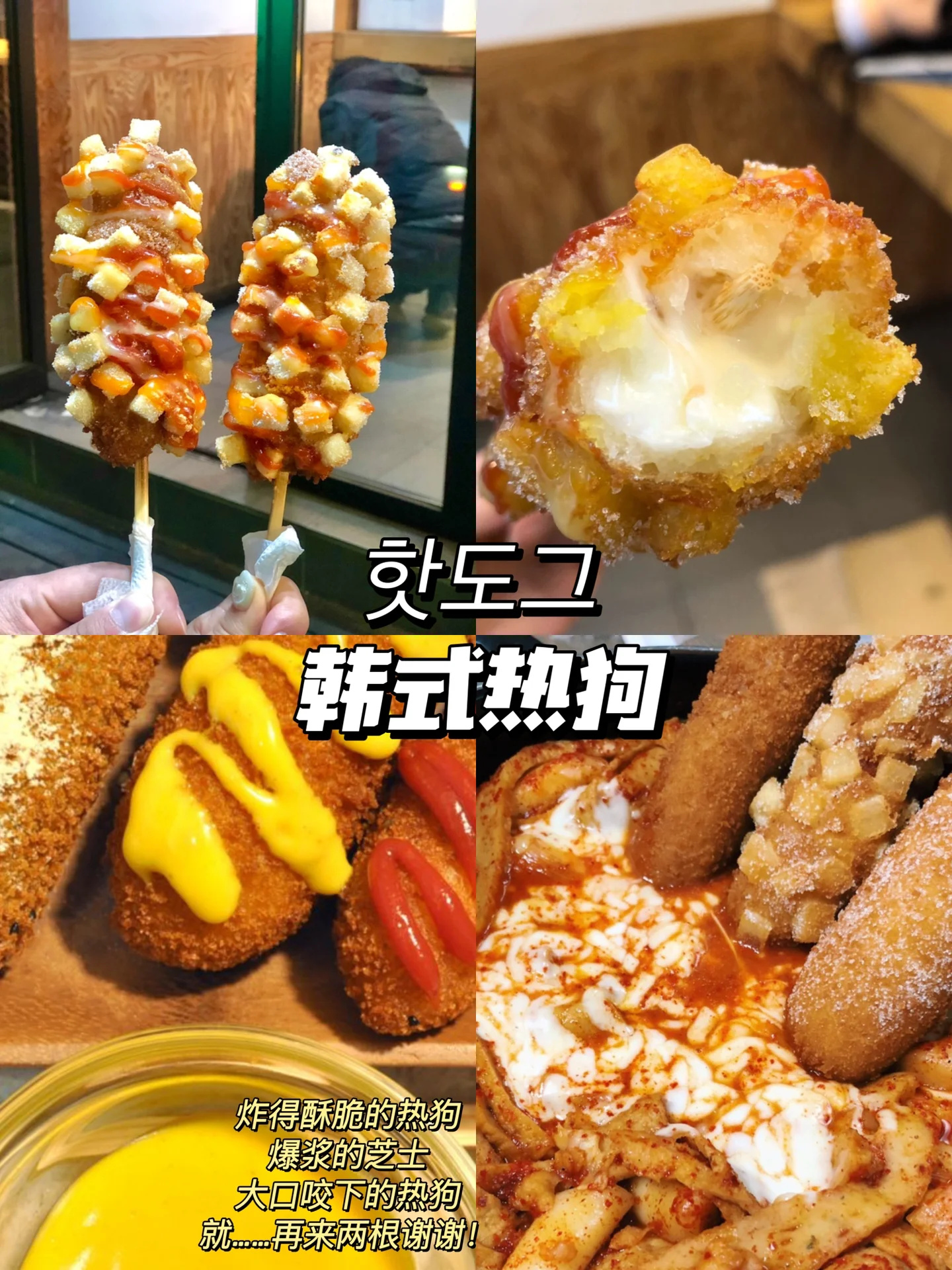 韩国的热狗是很扎实的大热狗,外面是炸的酥脆的面包,咬下去后的香肠超级好吃!