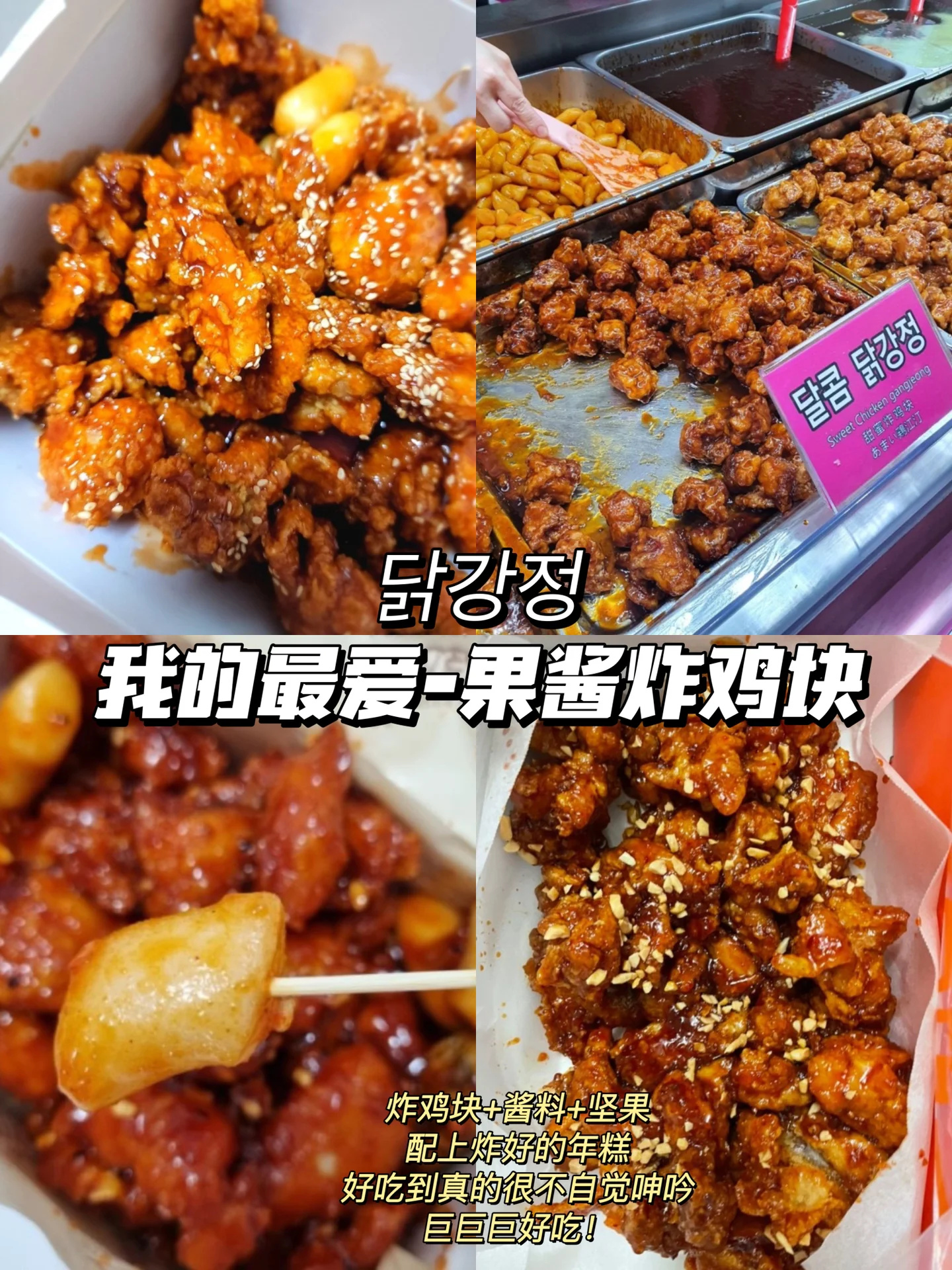 这个是我的最爱!韩国的炸鸡很好吃,如果你觉得炸鸡太大份的话,炸鸡块就很合适,这个炸鸡块还有韩式酱料,上面还会有坚果,真的巨巨巨好吃!
