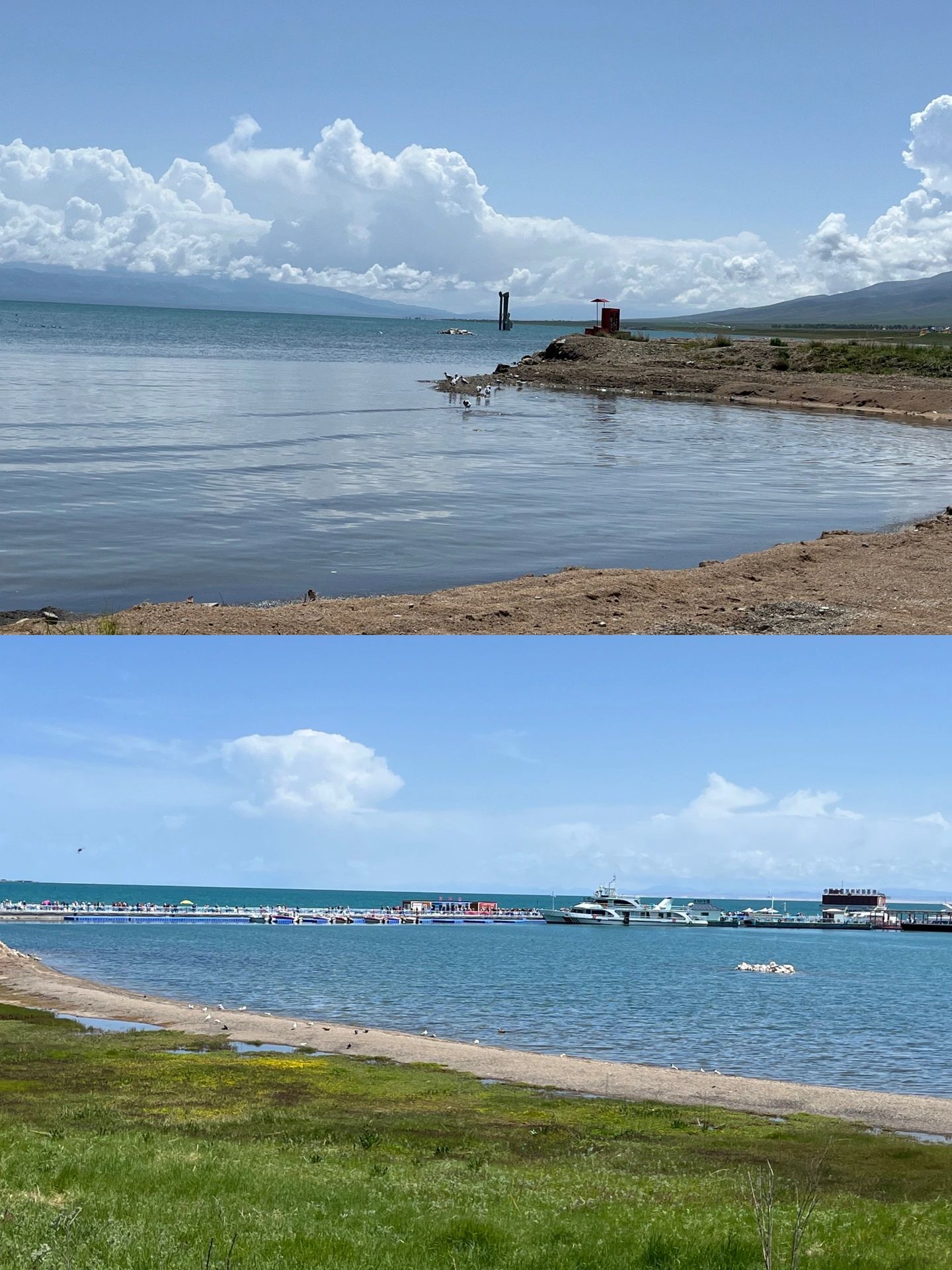 🌟青海湖主要是赏景拍照,并不能走到沿岸去,不过坐游轮或者快艇可以进去玩,邮轮140-180左右/人,快艇100/人10分钟,可以带一点面包🍞喂海鸥,水中还有鱼🐟。门票那些都可以在微信或者手机软件上购买,门口直接刷身份证就行,湖边挺冷的,可以买一个披肩,花花绿绿的拍照也好看,我们当时是门口买的,有毛毛的120,没有毛毛80。