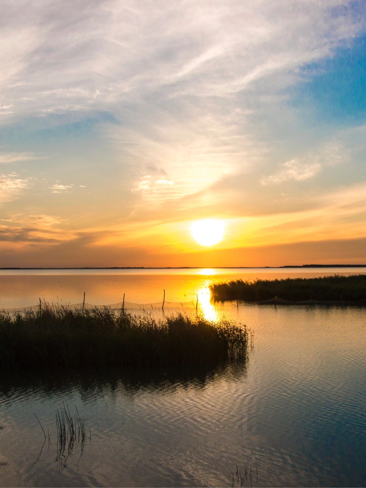 🏞✨由于连环湖是浅水湖泊,湖畔边到处都是摇曳的枯萎,从湖面上远眺湖面波光粼粼,鸟儿飞翔,宛如江南水乡天上人间,夕阳亲吻着大地和湖面,划分了白天与黑夜,投林的倦鸟载着夕阳的殷殷血焰归去。