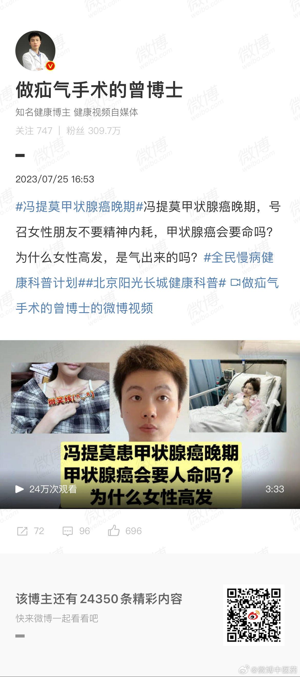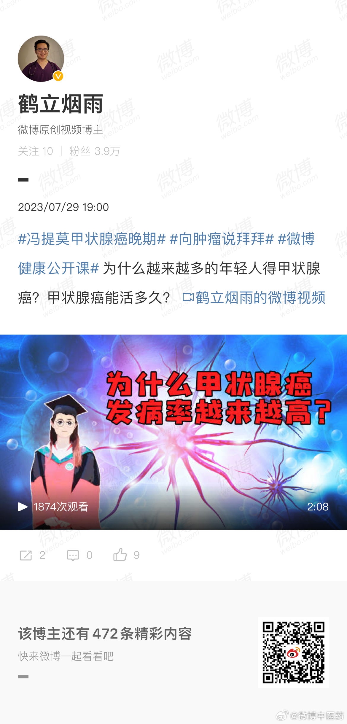 甲状腺癌是最常见的甲状腺恶性肿瘤。以恶性度较低、预后较好的乳头状癌最常见。发病率与地区、种族、性别有一定关系。女性发病较多。甲状腺癌是个什么病?精神内耗真的会诱发甲状腺癌吗?甲状腺癌会要命吗?#甲状腺癌#