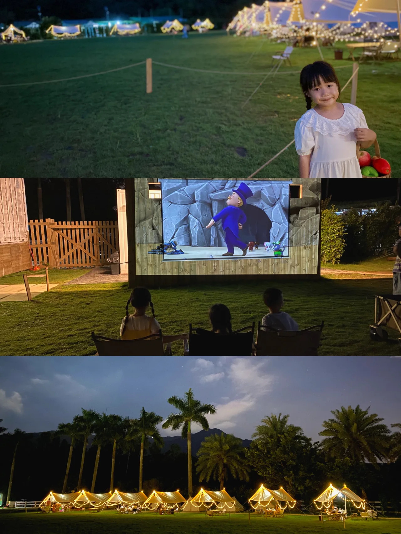 我们自带了投影仪,营地有wifi,吃完晚餐后小朋友们排排坐一起看最喜欢的动画片。
