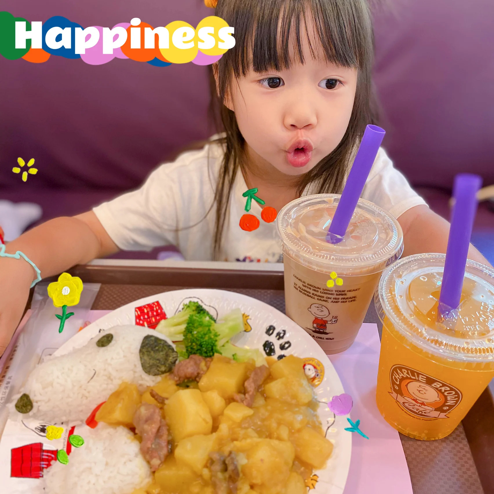 午餐我们选择在史努比乐园里面餐厅吃,米饭都是史努比卡通图案。