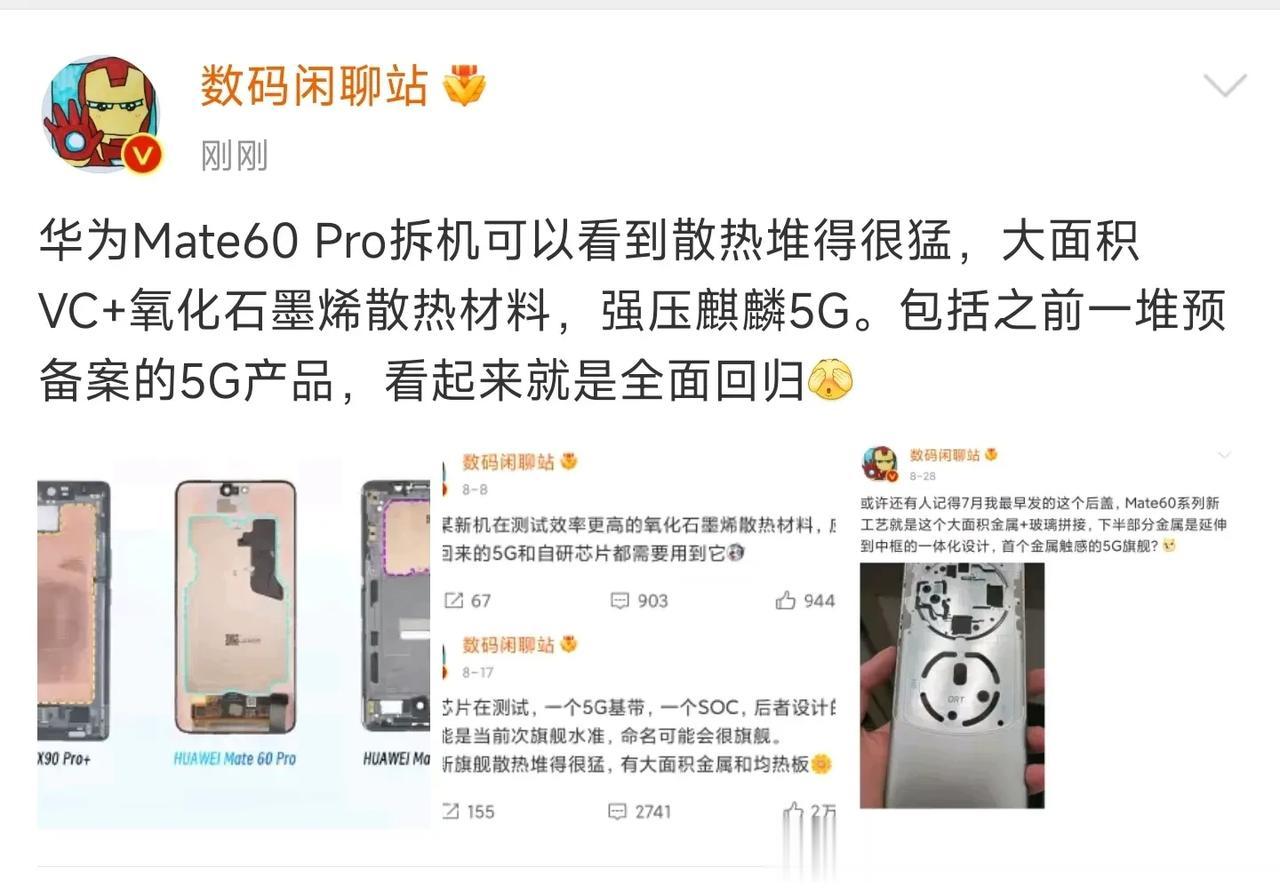 通过散热不难看出。麒麟9000s。妥妥的火麒麟。 可能容易翻车,建议大家都观望观望。 由我来替大家试试水。好不好用再告诉大家[大笑] 可以看出华为这一次的散热堆的很多,目测比mate50系列高了两三倍。新麒麟确实热。 但消费者的热情更加火热。 Mate 60 Pro全网售罄 因为是我们自己啊,设计研发的芯片。 采用了全新的架构。同时也是我们自己的技术生产。它的意义远远超过了一台手机本身。 有了1就会有了23456。总而言之,可喜可贺。