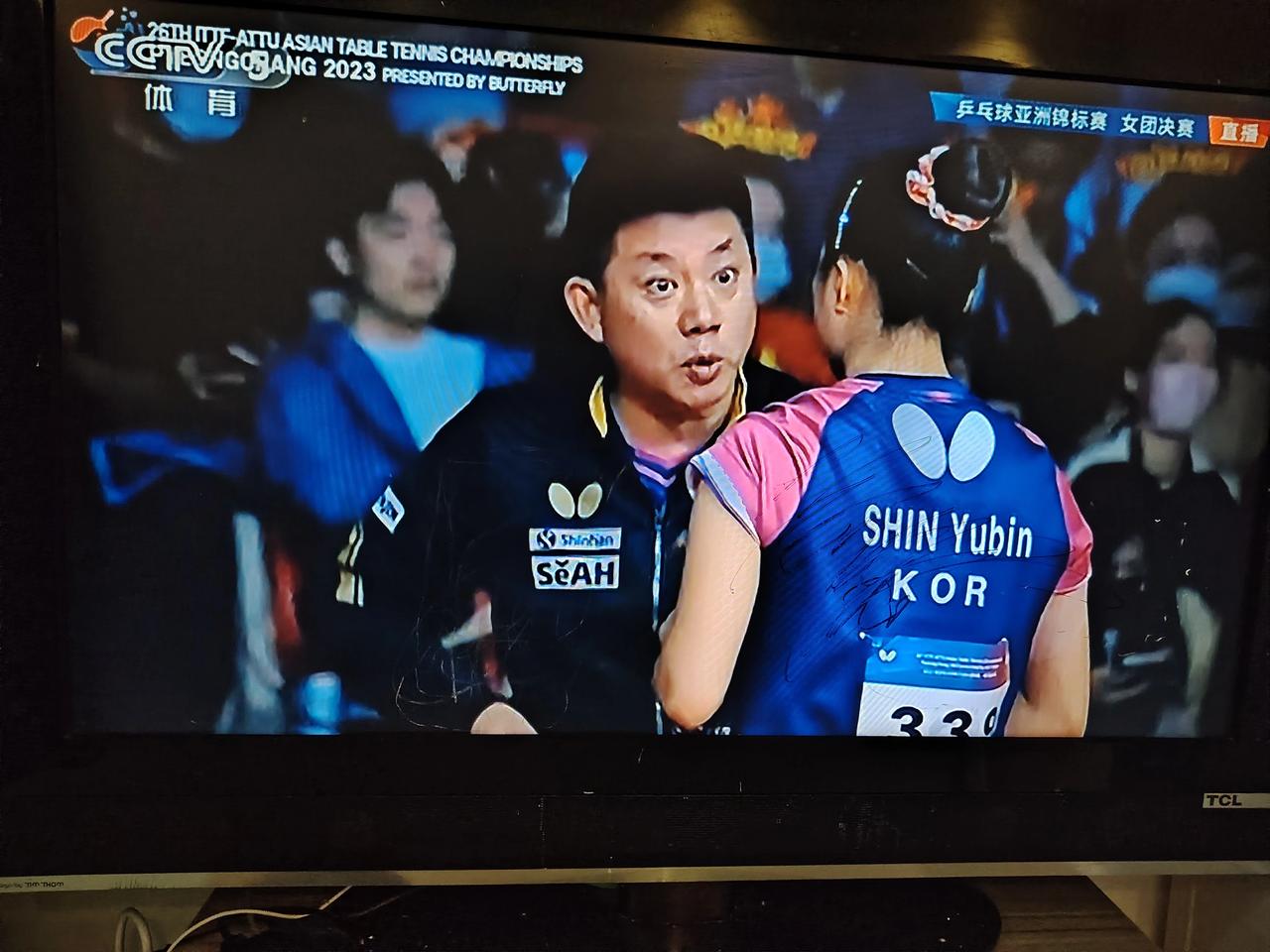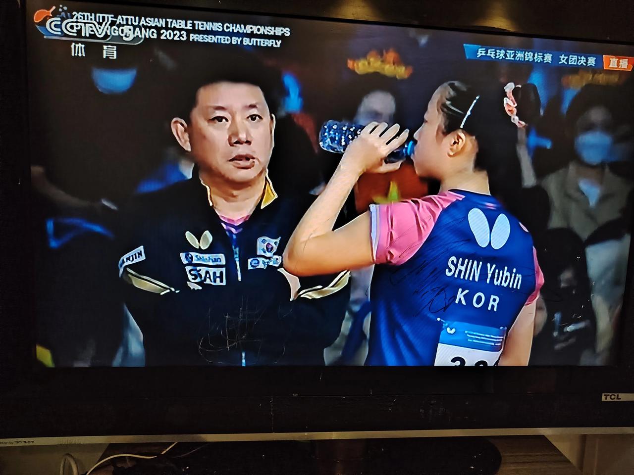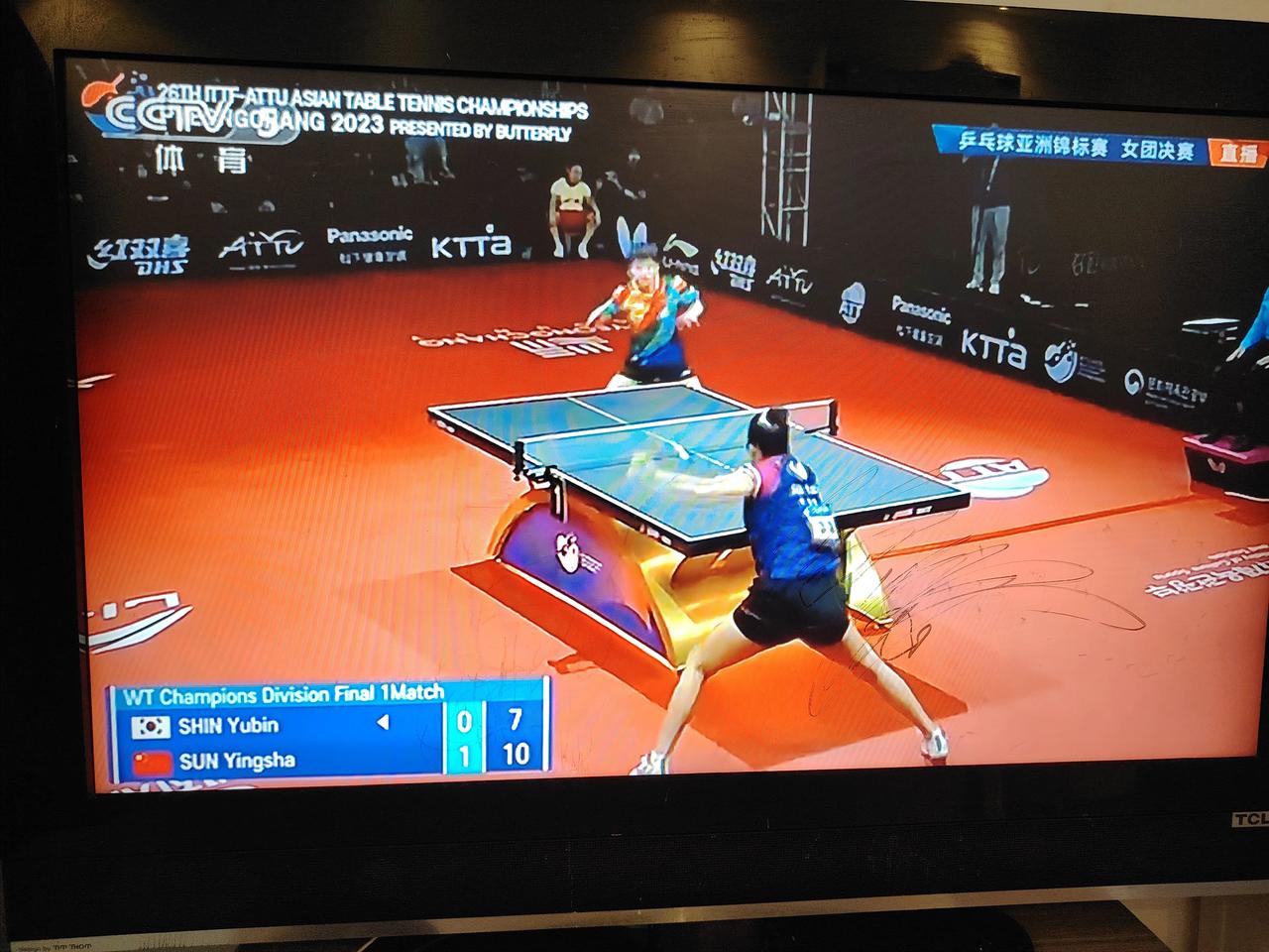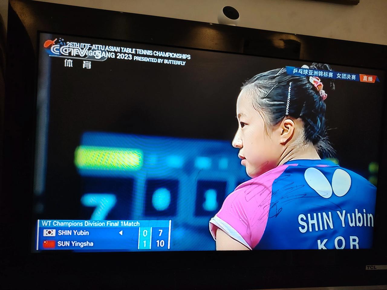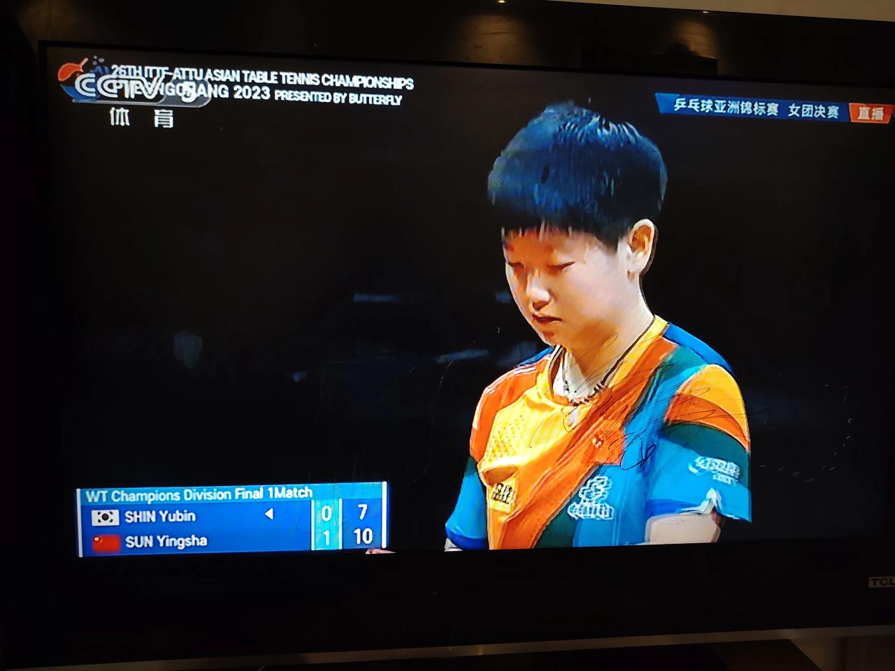 亚锦赛女团决赛,正在上演!莎莎第一个出场!对阵韩国一姐申裕斌!莎莎先下两局,第三局被对手追到6平!莎莎的可爱小撅嘴顿时闪现!来几张精彩照片吧![赞][赞] 莎莎赢下第一分!3-0 申裕斌!