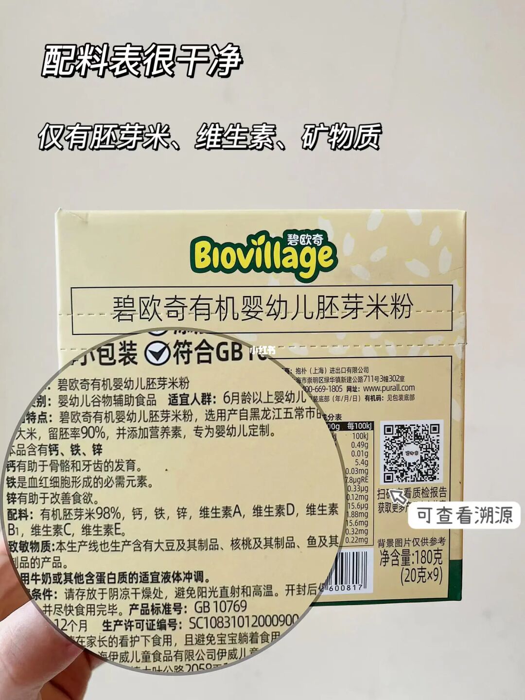 👉做了很多功课给我家宝宝选择了碧欧奇有机胚芽米粉,这款胚芽米粉是符合婴标和有机认证的,只使用了单一谷物,配料表非常干净,无添加食用盐、白砂糖、香精、色素和防腐剂;有机胚芽米的留胚率大于90%,搭配VC,更好吸收;粉质也很细腻,好冲泡,让我更感到贴心的是它做到了分装,一次一袋干净卫生,不易受潮,出门携带也方便,妈妈们可以闭眼入哦~