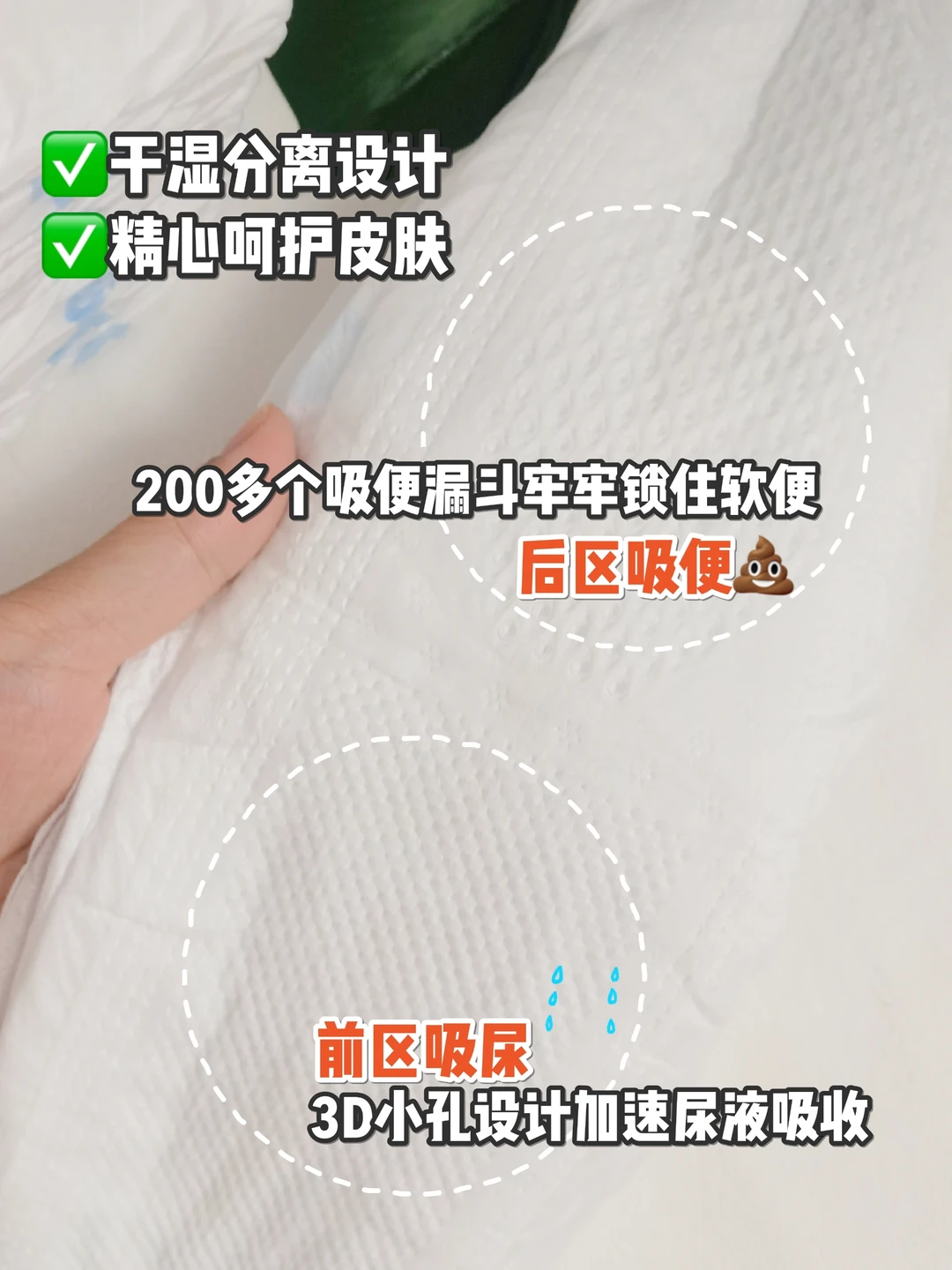 宝宝刚出生那会,我们就要做好攻略,选一款能吸还舒适的,尽量不要老换来换去。像好奇这款屁屁“面膜”纸尿裤就很好用。它有专门设计尿便分区,尿尿区的3D小孔吸收尿液非常快,便便区的200多个吸便黑洞设计也是非常nice,即使拉了稀粑粑,也不会粘的哪里都是,还添加了维稳苹果酸🍎精华,帮助抑制便酶刺激,减少皮肤泛红,这样小屁屁就不容易闹情绪了