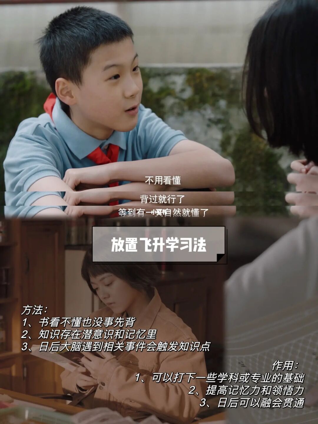 👩🏫作为本剧的学习课代表,开播前六集中涉及到的一些学习方法我已经给大家整理出来了。一目十行法、放置飞升法、重点提思路摘抄法、课文背诵法等等;你们记笔记就行了~