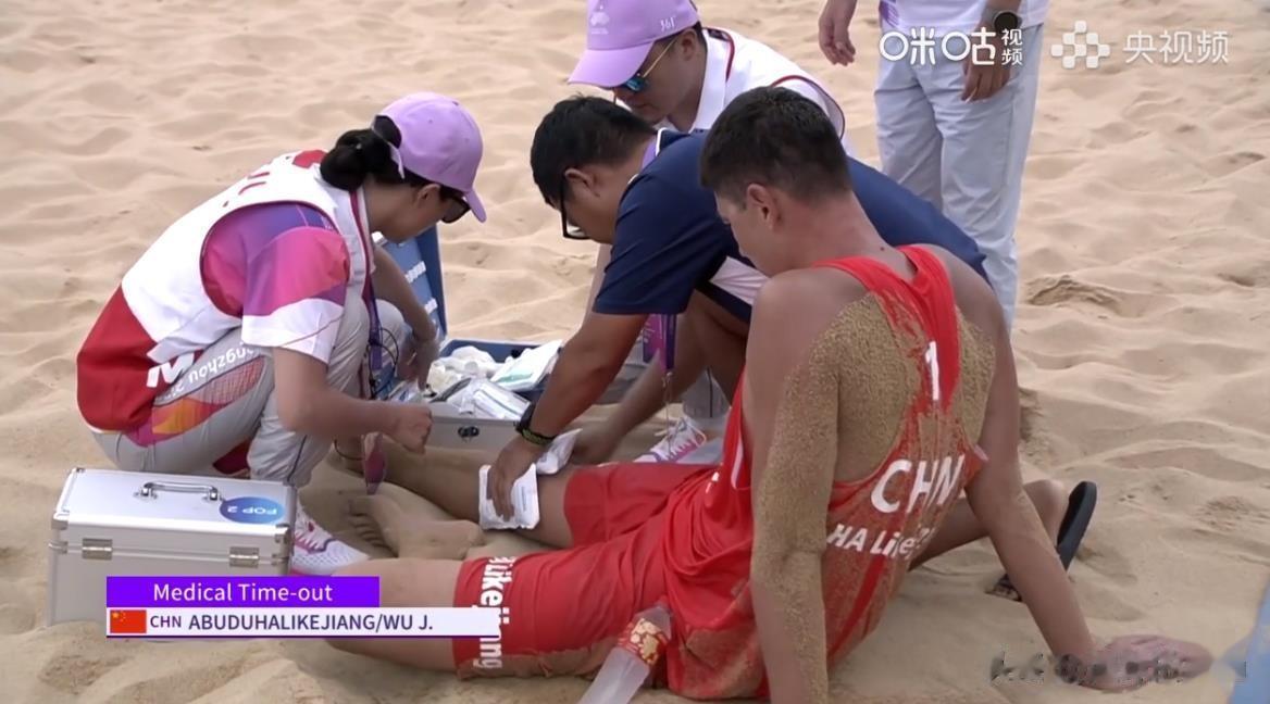 #杭州亚运会#20日下午进行的一场沙滩排球小组赛中,首次亮相本届亚运会的哈力克江/吴佳欣组合,以2比1惊险战胜菲律宾的布伊特拉戈/加西亚取得开门红。 中国组合的胜利来得极度惊险,决胜局9比12落后时,哈力克江一度扭伤膝盖不得不现场接受治疗,治疗结束之后,中国组合又曾经12比14落后、送给对手两个赛点。但最终,中国组合还是克服重重困难,以18比16惊险拿下决胜局的胜利——希望31岁的哈力克江伤情无碍。