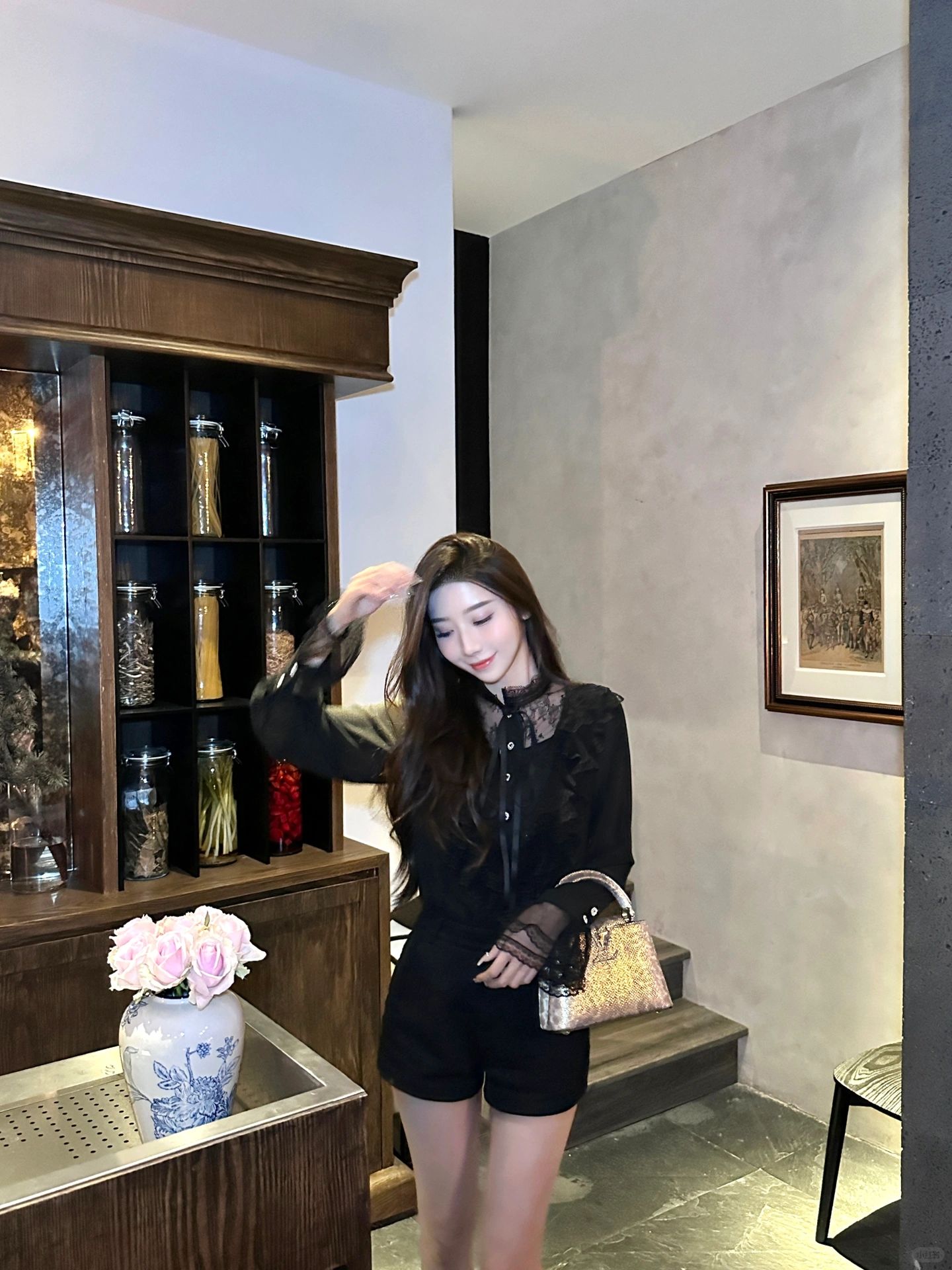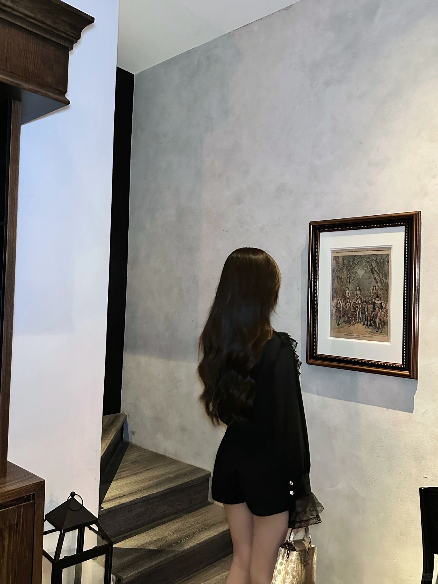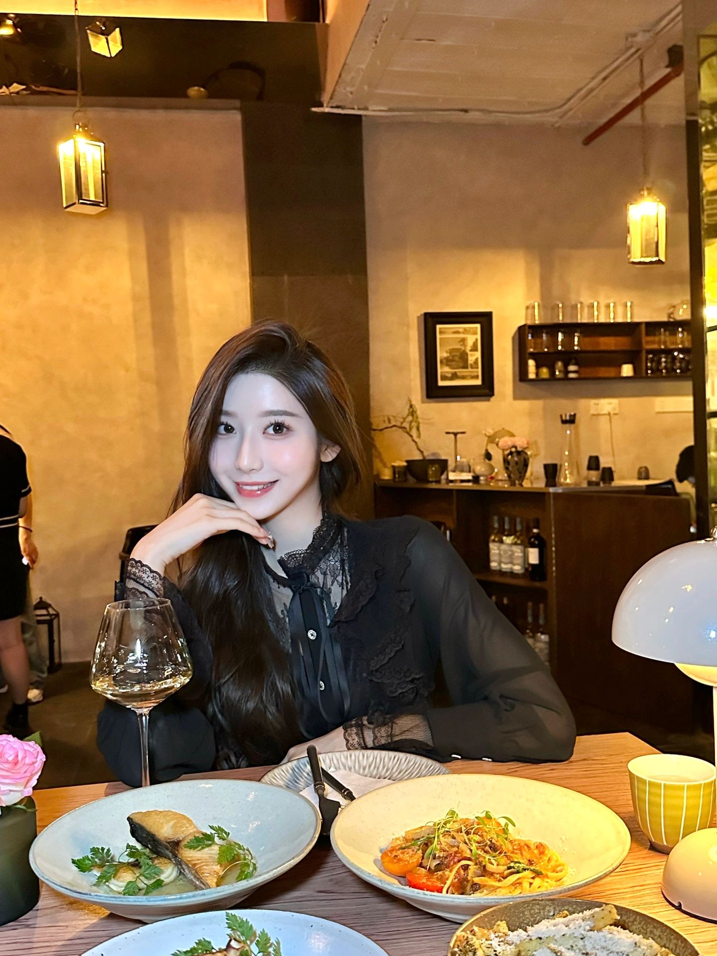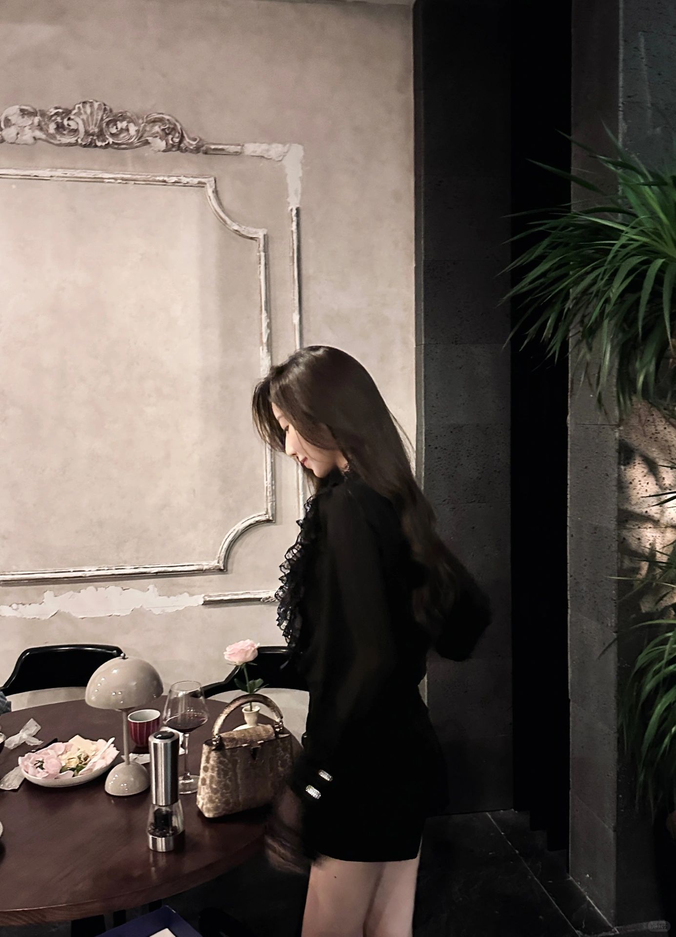 黑色蕾丝衫果然性感又御姐 姐妹说今天的新包一背整个富贵起来了[笑哭R]hh 这家餐厅有点欧洲古堡风 优雅而浪漫💕