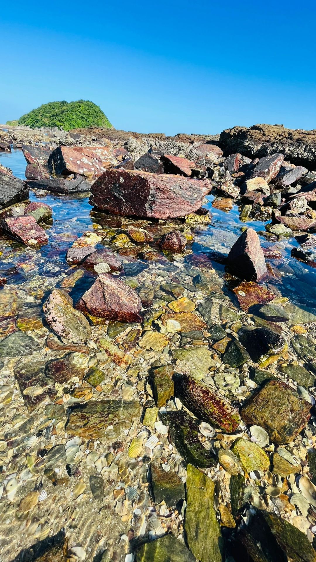 🏖️位置在惠州南边的一个小渔村,有天然形成的火山岩石堆,经过海浪的冲刷和阳光的折射下已变为五彩斑斓的石堆,这里赶海时间大概在下午的4-5点比较好,石滩上有随处可以见的生蚝,小海鱼,螃蟹等等,只要带上工具就能捡上一份海鲜大餐,滩上也看到有当地人浮潜去捡生蚝。海滩游泳玩沙都是免费的,沙子也是非常幼细,光脚在沙滩走是非常舒服。