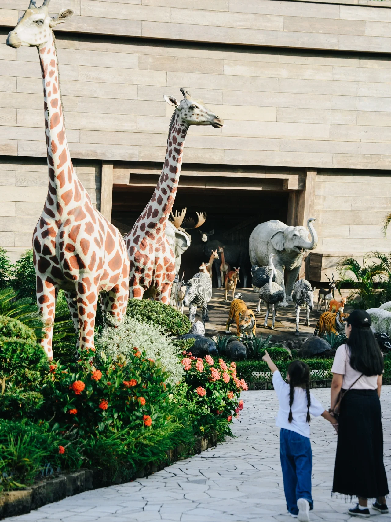 ✨吃完早餐后,带娃来到方舟花园,可与长颈鹿,斑马等各种动物雕塑打卡📸