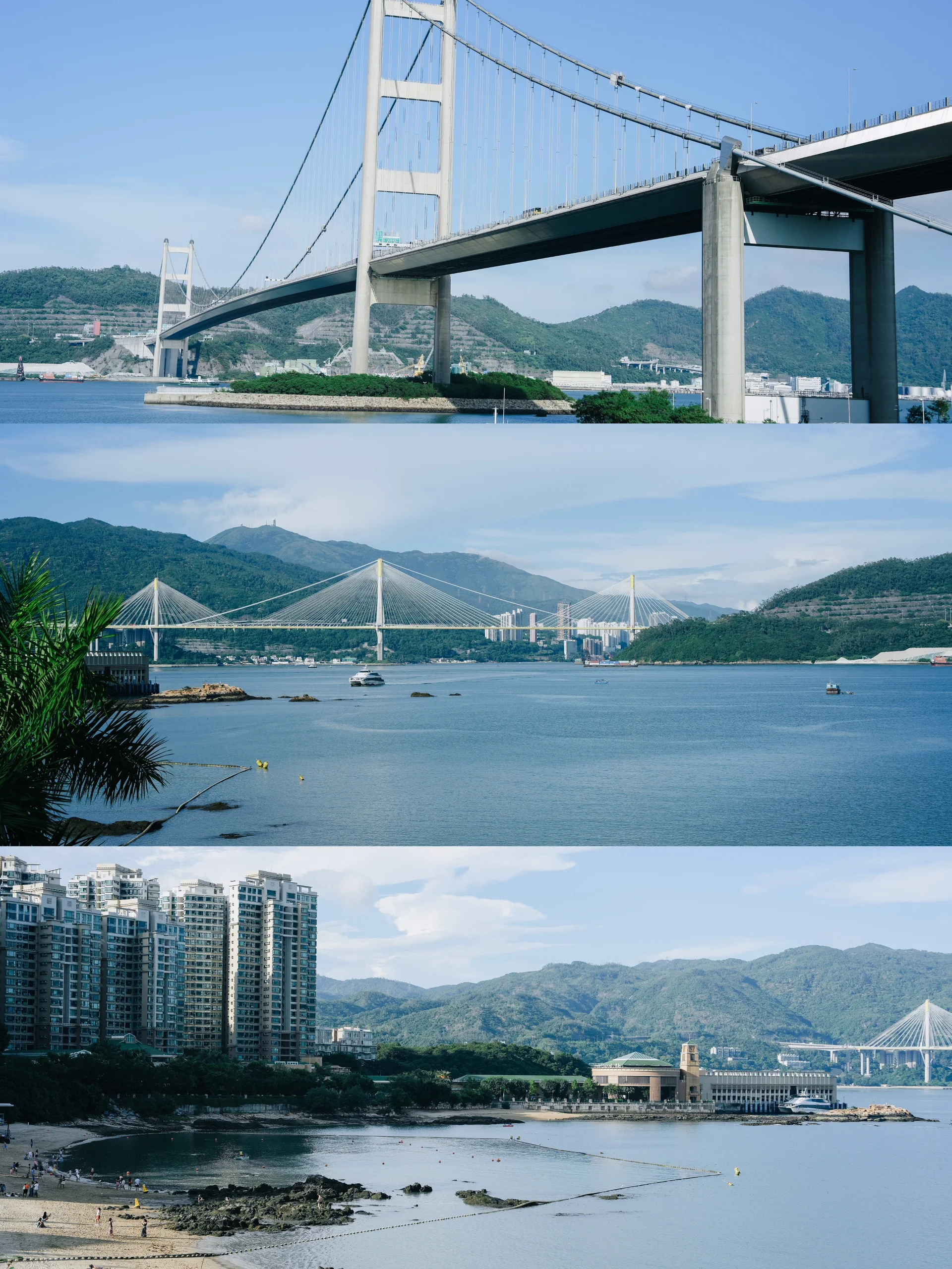 ✨海滩可看到香港地标青马大桥,蓝天白云☁,孩子可挖沙赶海🌊