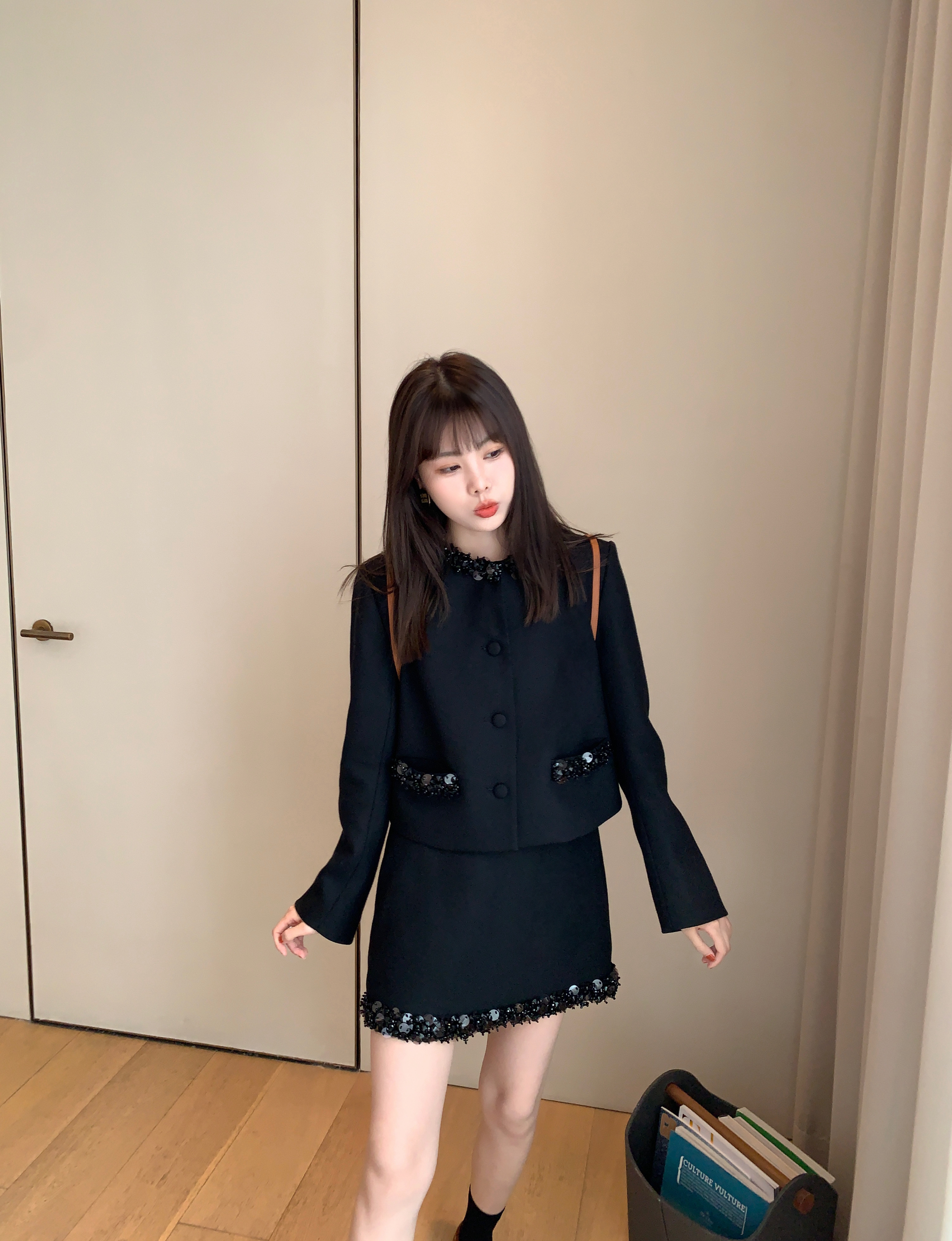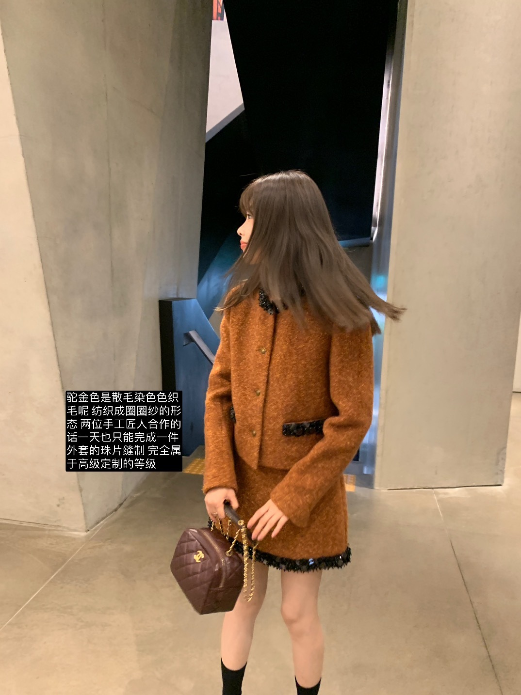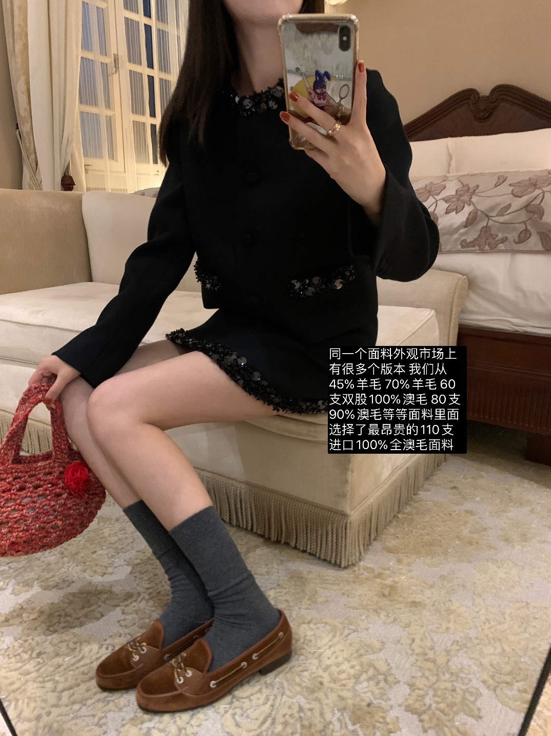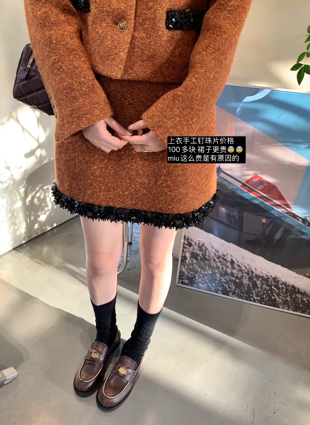 这组上身是满满的高级感 miu卖的那么贵是有原因的 可能市场上价格层次不齐 但是我们选的面料和工艺都是上等品了 好的面料更经穿保值!