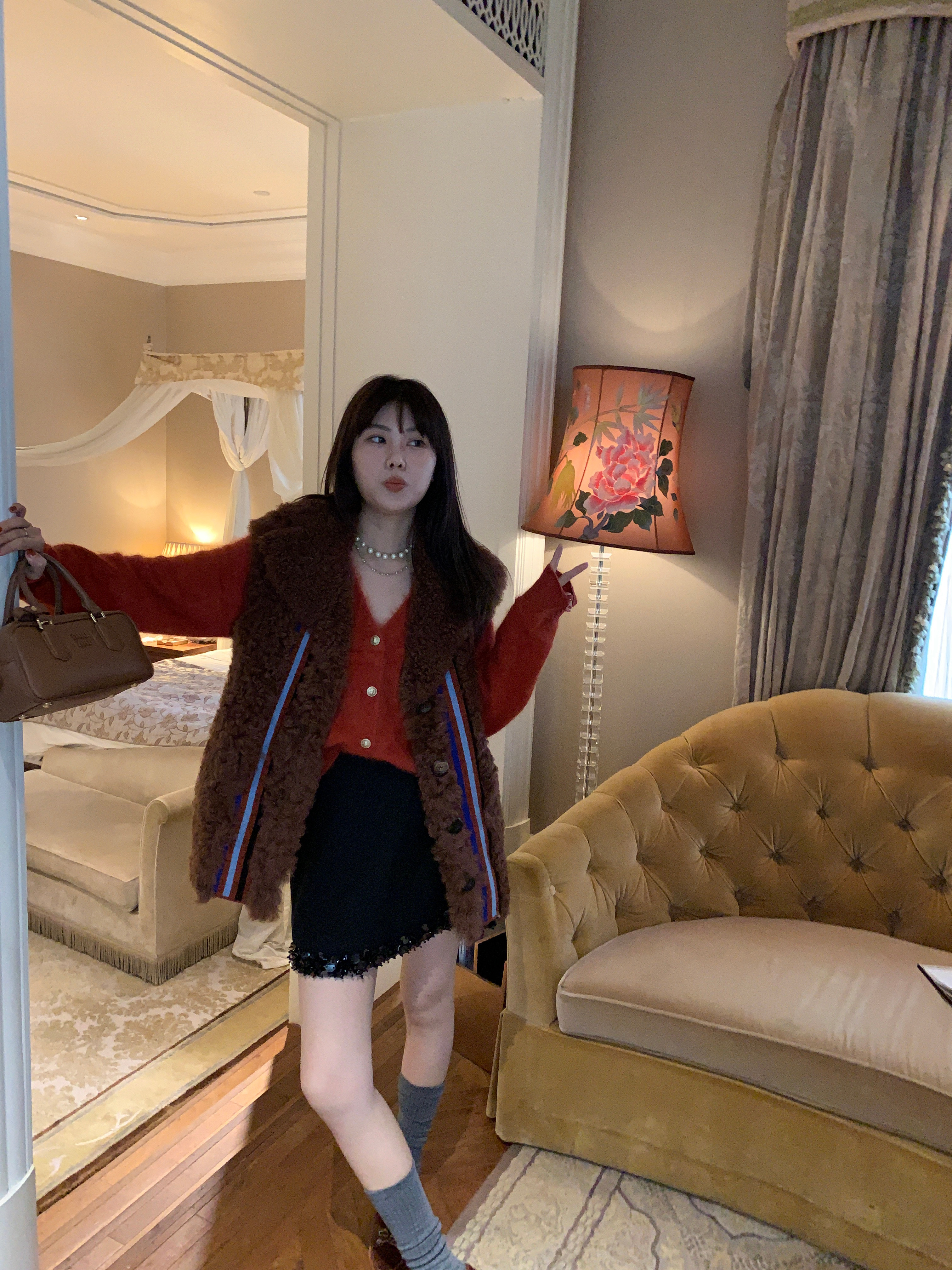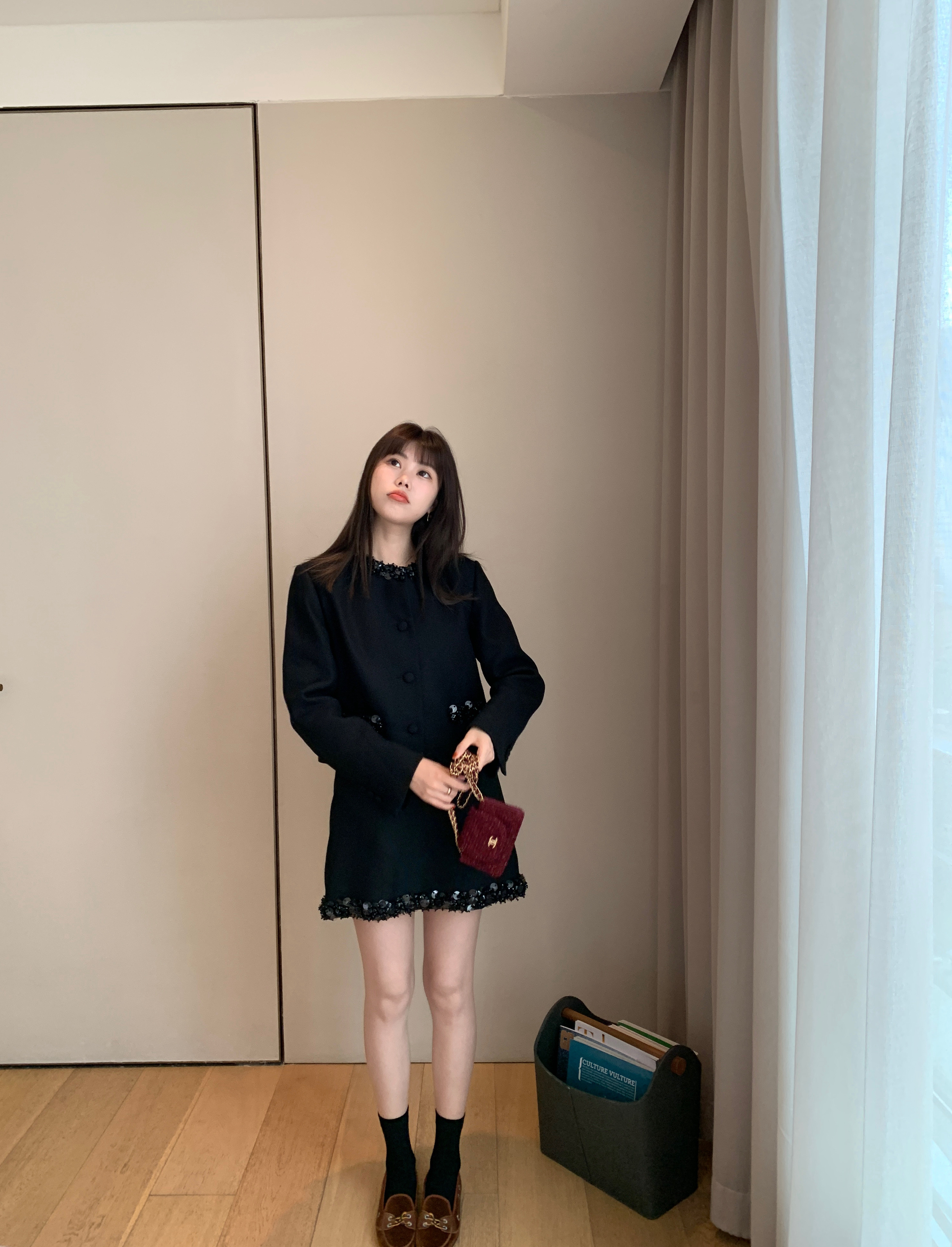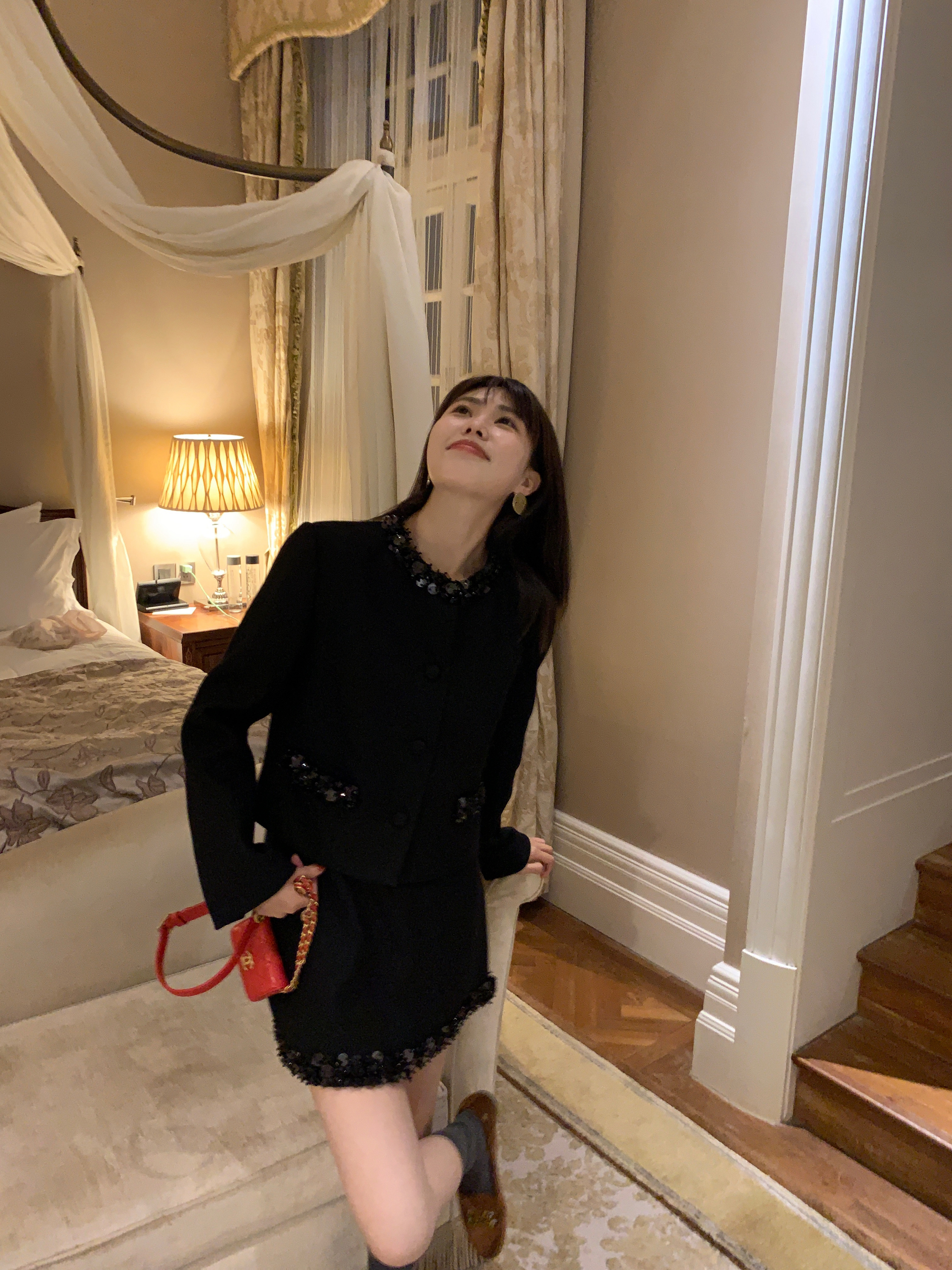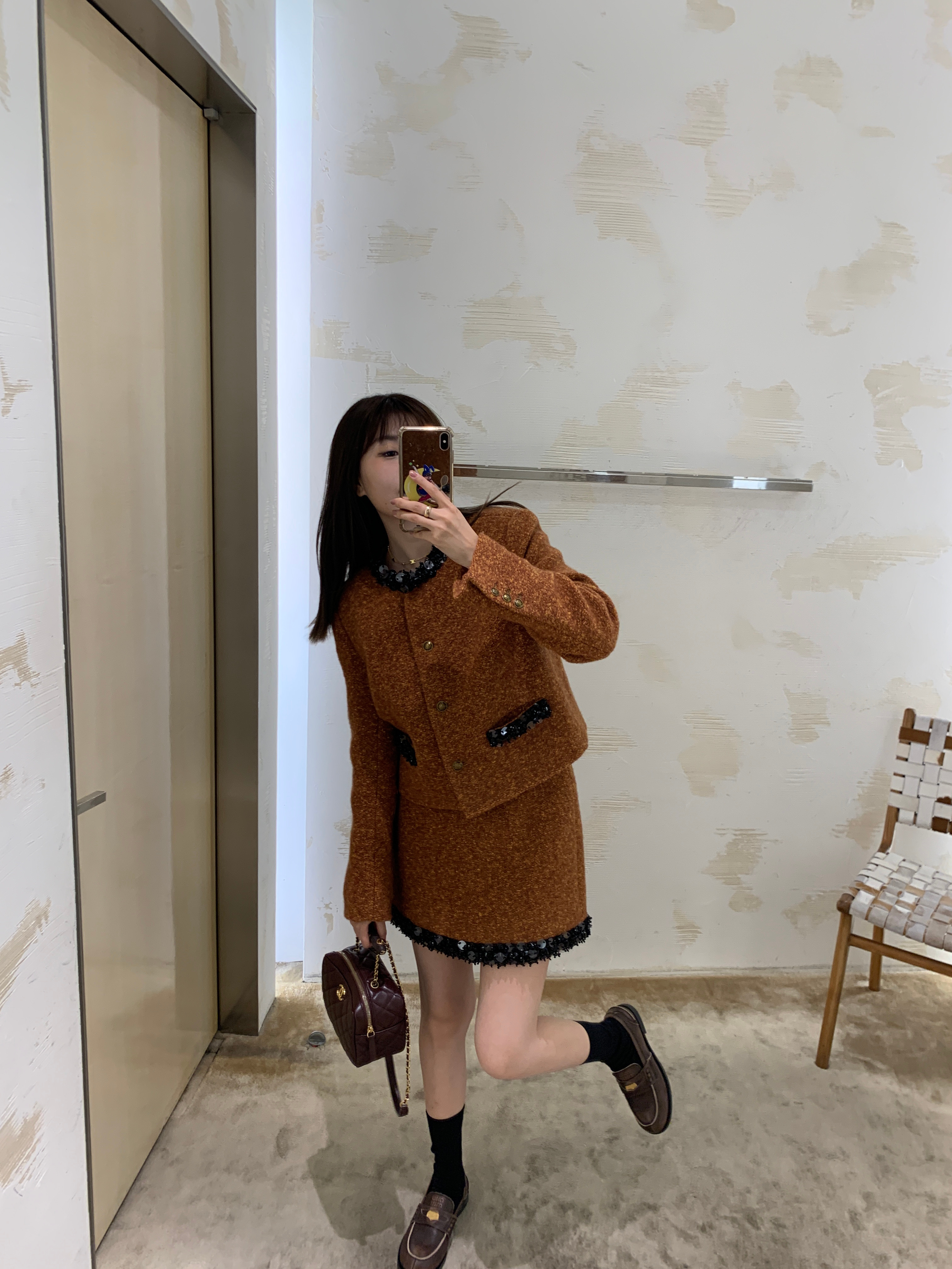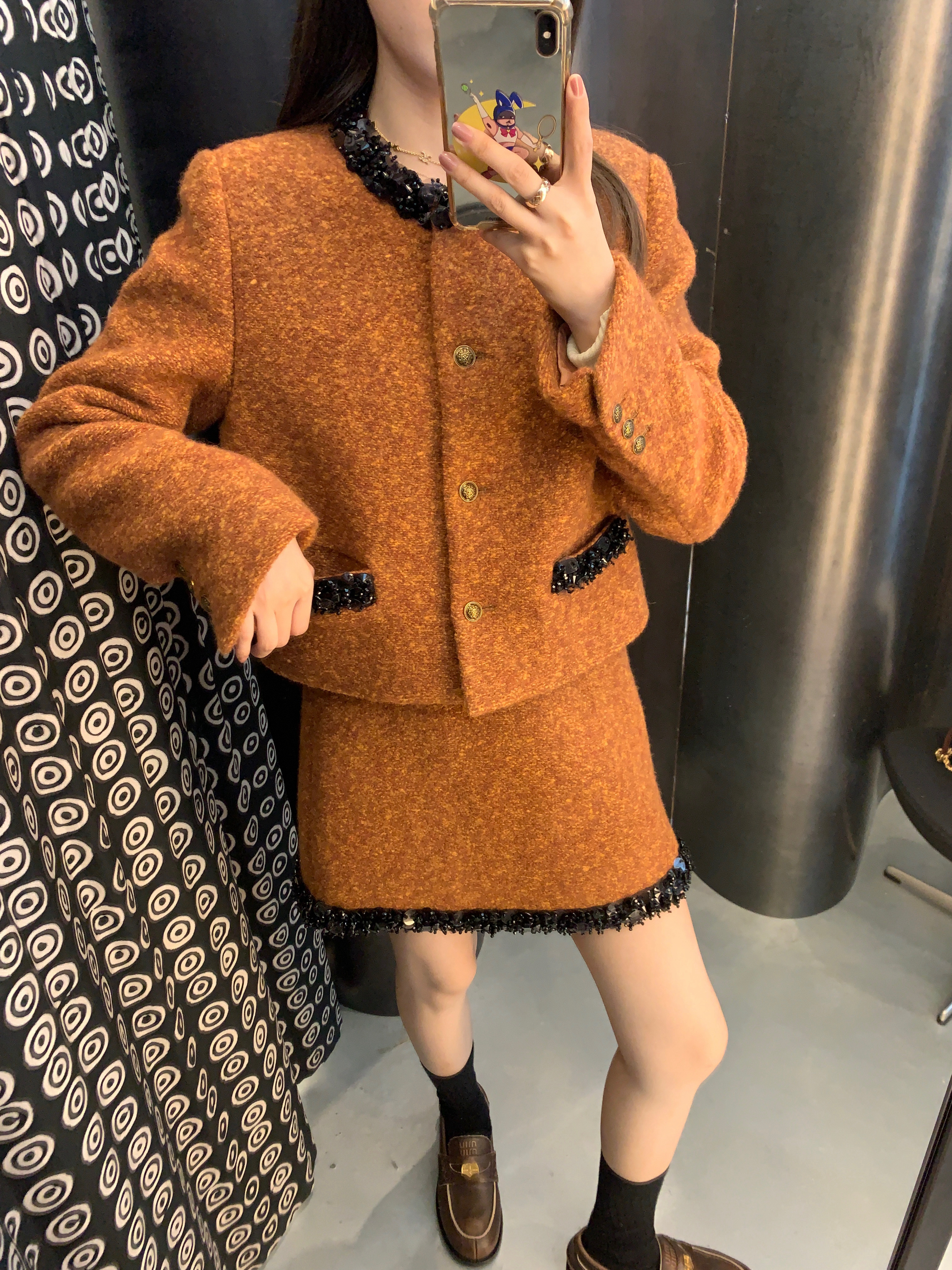 这组上身是满满的高级感 miu卖的那么贵是有原因的 可能市场上价格层次不齐 但是我们选的面料和工艺都是上等品了 好的面料更经穿保值!