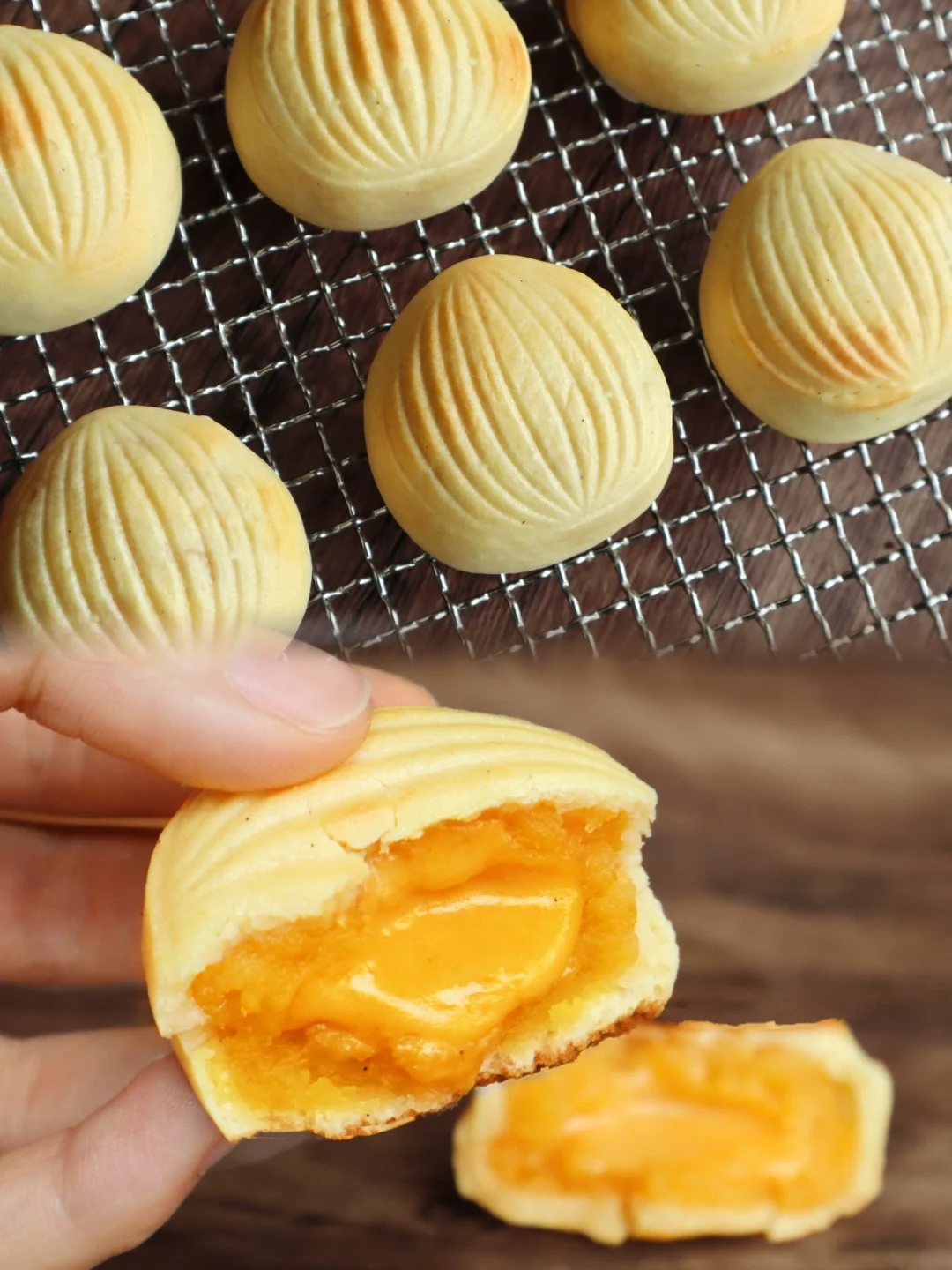 🥣奶酥饼皮:软化黄油50g|玉米糖浆60g|全蛋液20g|低筋面粉120g|糖粉20g|澄粉8g|奶粉20g|香草膏5g