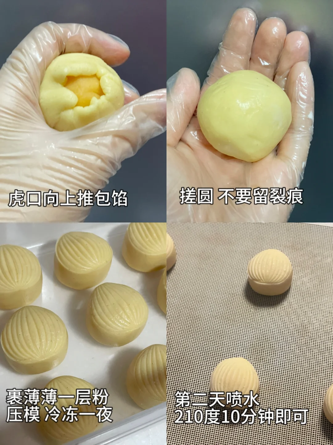 6⃣️第二天月饼不解冻,烤箱220度预热,月饼表面喷水,上火210/下火190烘烤10分钟即可