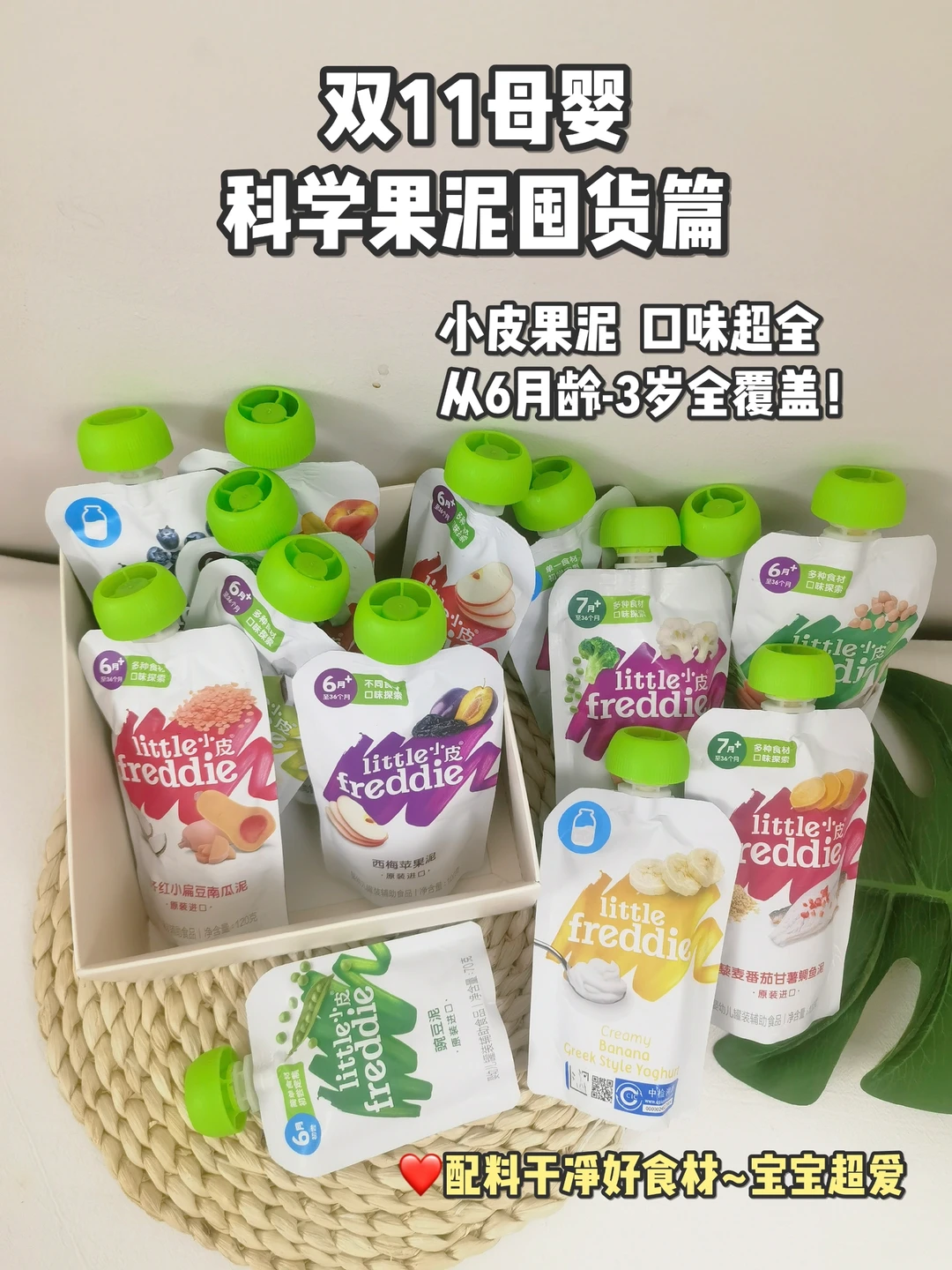 做了很多攻略,我👩🏻最终给宝宝选的是小皮果泥,不止是单一的水果泥,还有针对宝宝不同月龄和发育特征定制的混合果蔬泥、肉泥、酸奶泥,可以说是市面上辅食泥设计很科学的品牌了~