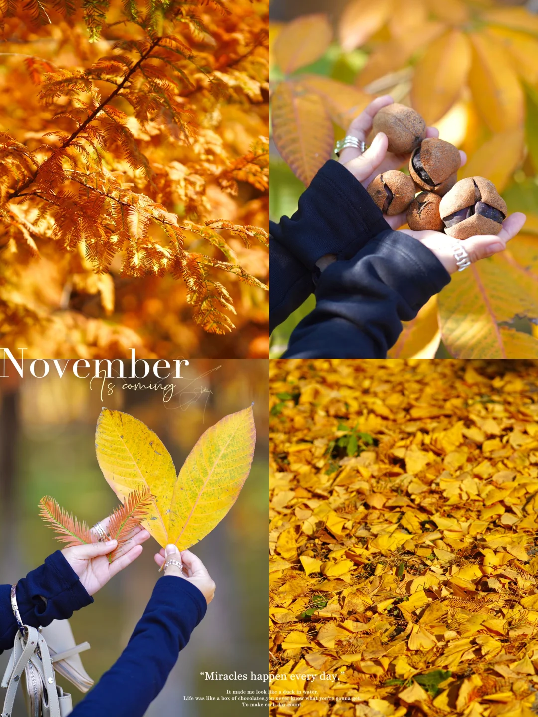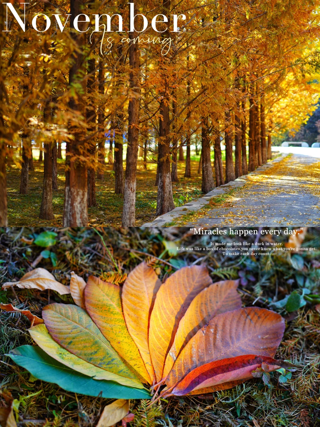 加利福尼亚红杉树、银杏、枫叶、层林尽染