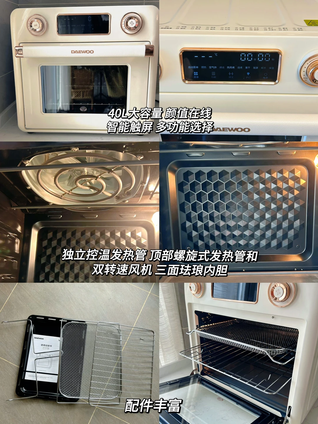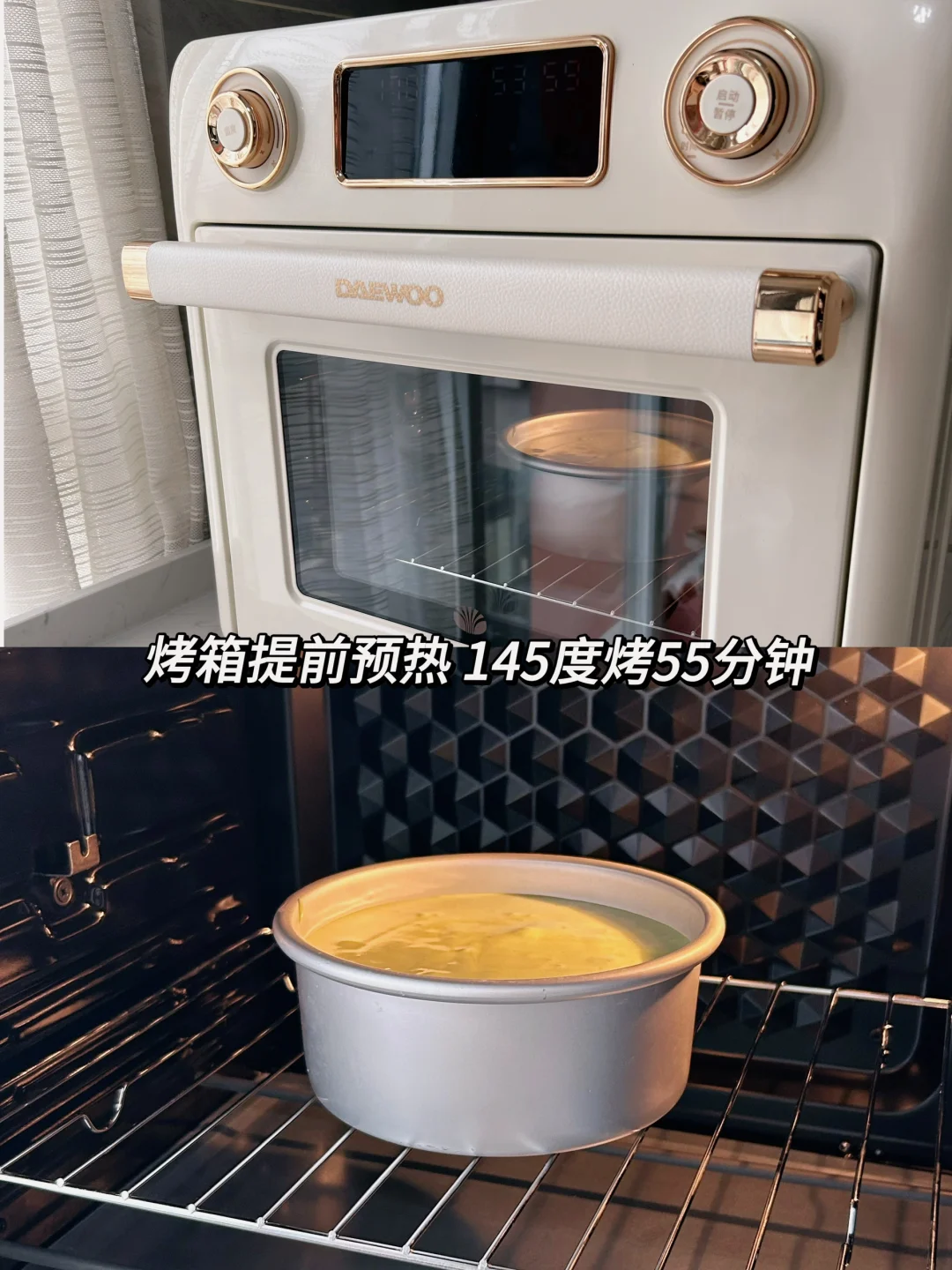 ✔️如果以上操作都没有问题的话,那就是烤箱的温度问题了,温度偏高或偏低都可能导致戚风失败,最终烤箱的温度还需要自己去磨合,像我今天用的是大宇kx07烤箱,40L的立体大容量,能满足家庭日常需求,上下共4根发热管能独立控温,顶部还配有螺旋发热管和双转速风机,温差小,烤出来的食物上色非常均匀,除了能烘焙外,它还有空气炸功能,烤肉也是嘎嘎香!这简直不要太实用了,对新手小白们也是实在的友好!