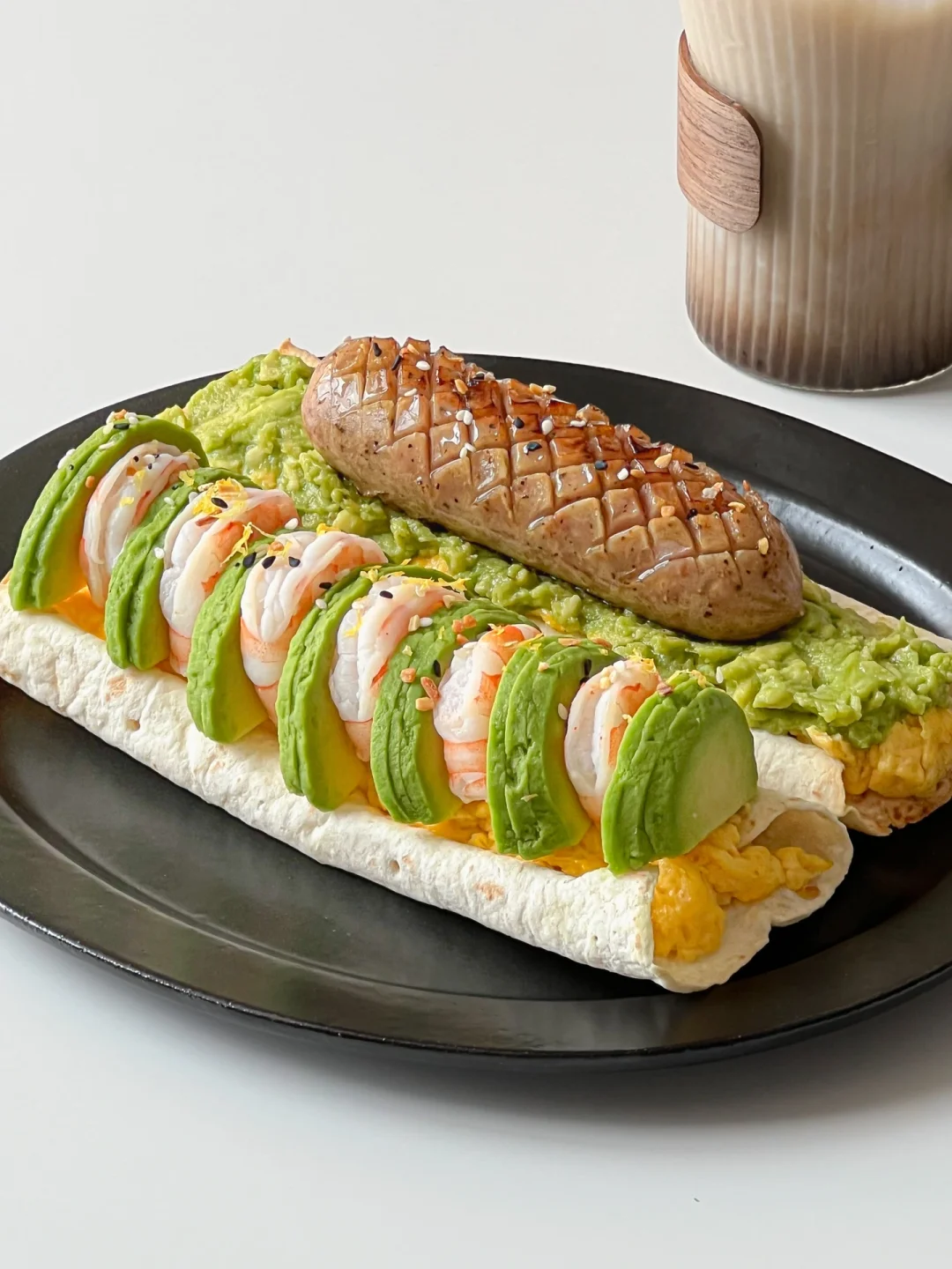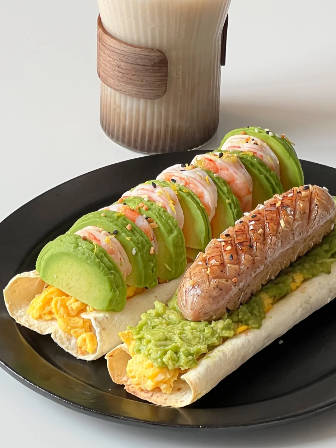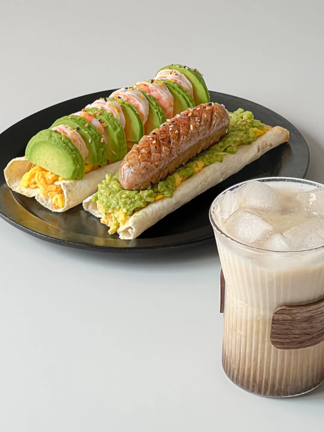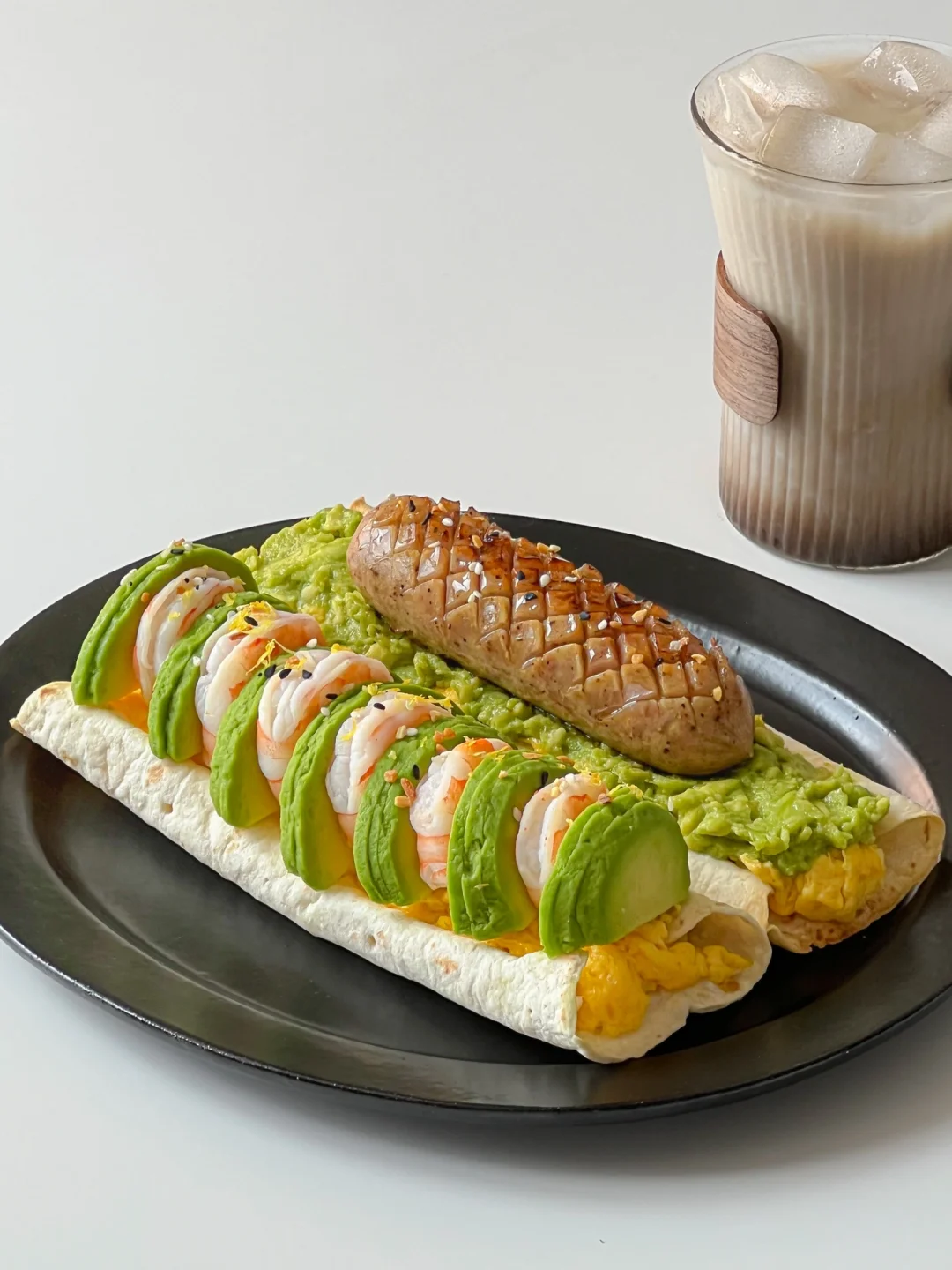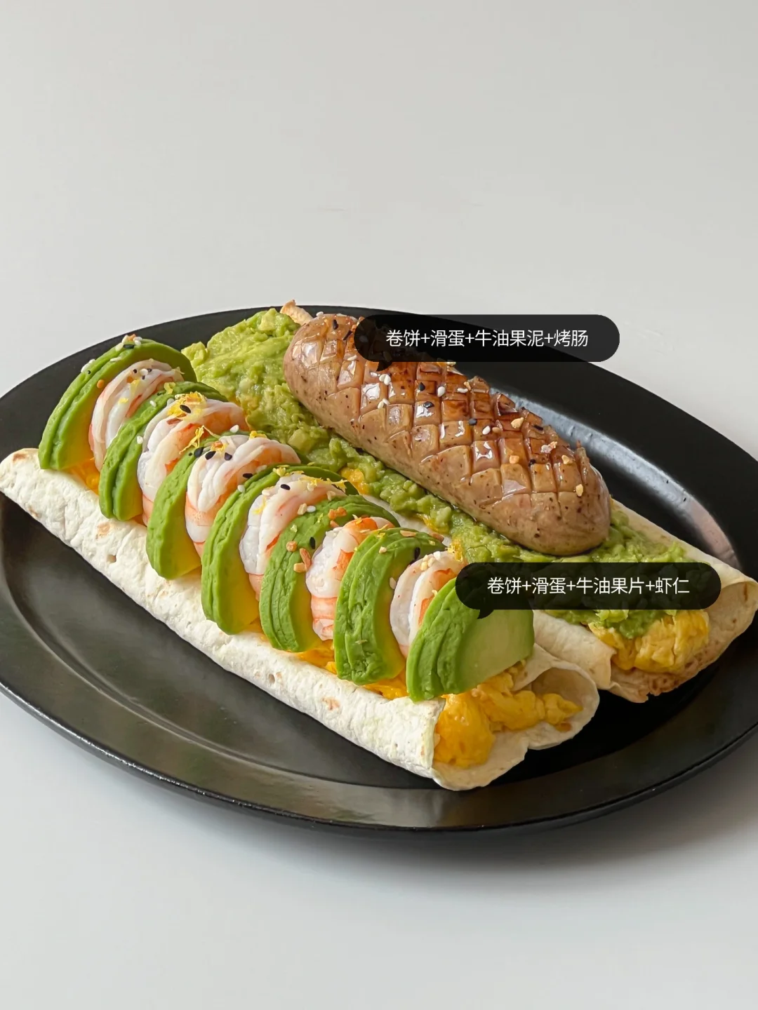 早餐brunch🌯|牛油果滑蛋虾仁&烤肠卷饼