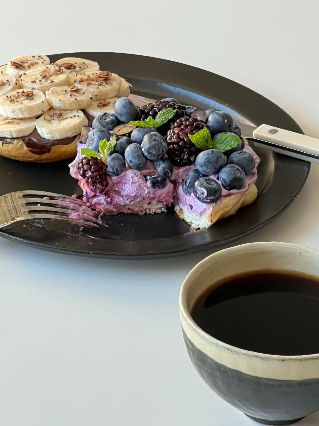 早餐brunch🍴|双拼贝果🥯蓝莓果酱&可可酱