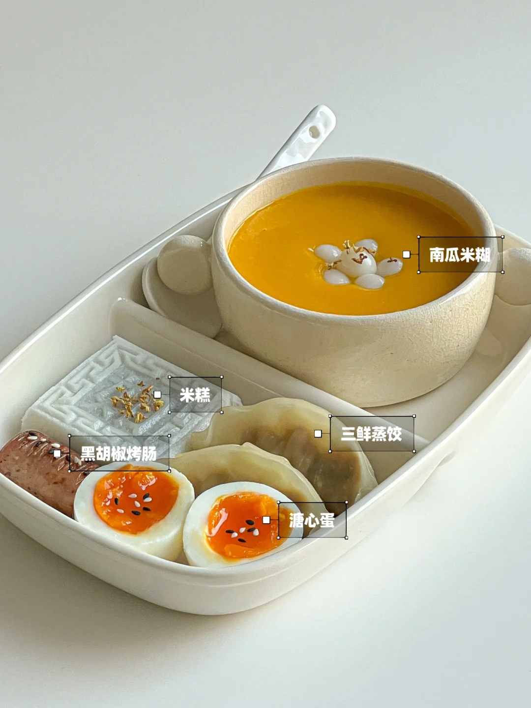 中式早餐🥢南瓜糊🥣烧麦&盐焗蛋&黑胡椒烤肠