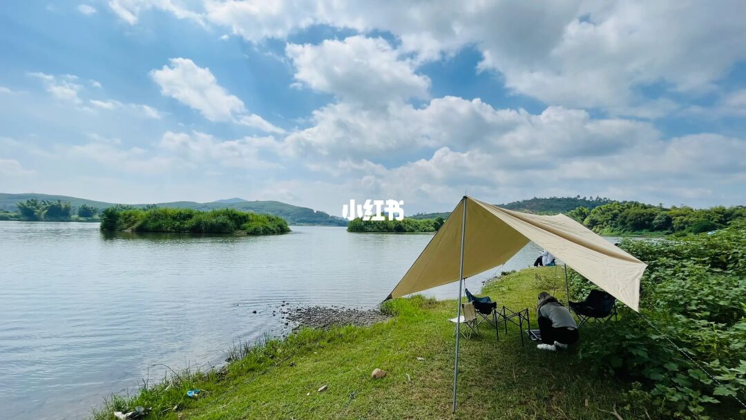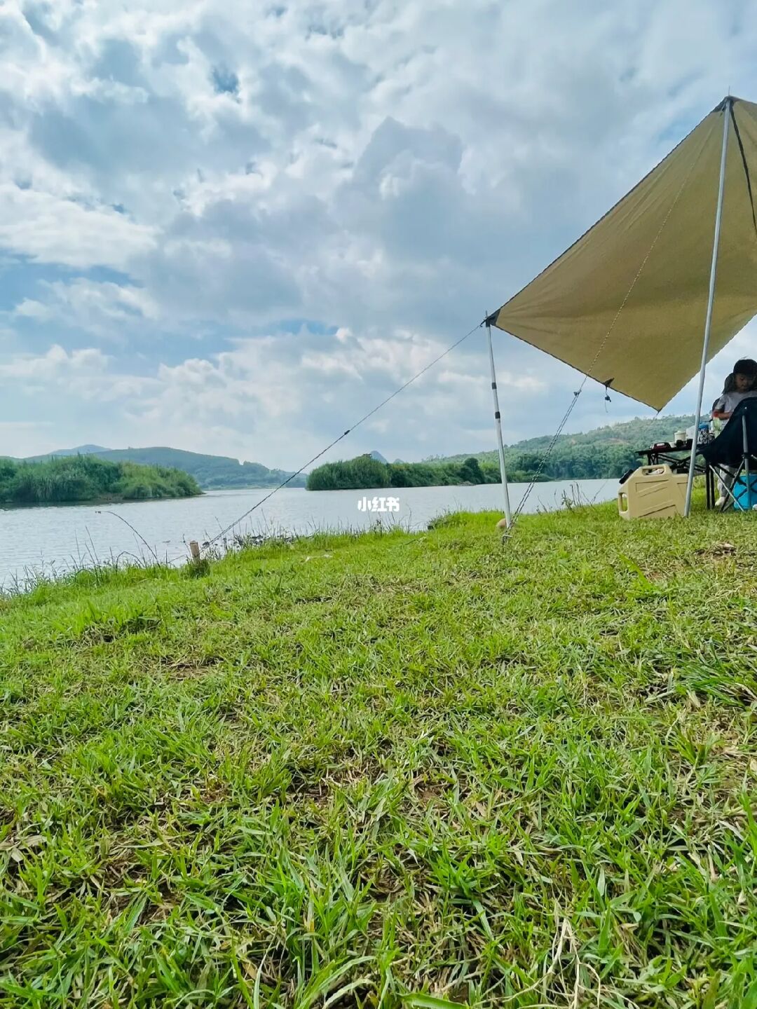 🏕️营地在北江边上,但隐藏的很深,所以环境也是特别好,这里有大草坪,江边水很浅,河面的水也非常平静,在石滩上有非常多的小鱼、黄沙蚬、小螺等,还有偶遇大河虾,生态环境保护的非常好,附近有不少钓友。
